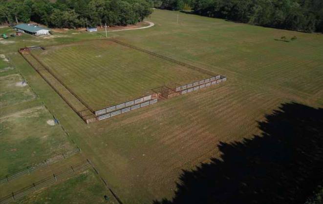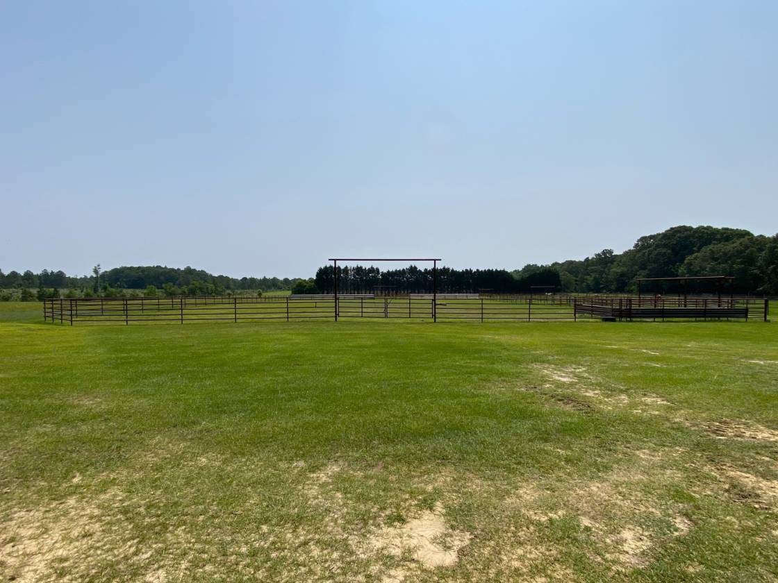 • 175' X 300' welded pipe riding arena with return ally and lead ups that are designed for all rodeo events including steer wrestling, calf roping, break away roping, team roping and barrel racing