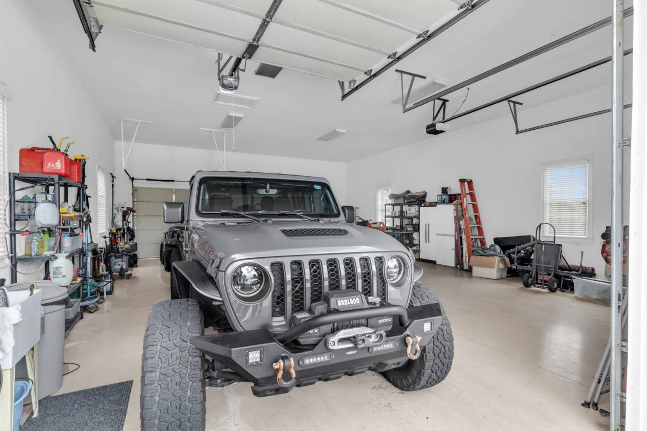 - Upstairs you will find 3 more bedrooms, two full bathrooms, a room that would make a great media/craft/gym room, and an attic that is not only fully floored but carpeted as well, giving you lots of storage within the house. The home has an attached 3 car garage, but also a detached garage that will hold 4 cars, a horse trailer, boat - whatever your toy of choice is. It does have a back garage door if you choose to park your tractor in there.