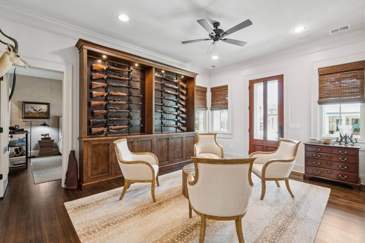 - The thoughtful remodel includes generous storage solutions for shooting, hunting, golf and fishing gear, ensuring that your outdoor clothing and equipment are always organized and easily accessible. For those who enjoy hosting, the expansive grounds feature a magnificent oversized firepit, perfect for gatherings under the stars.