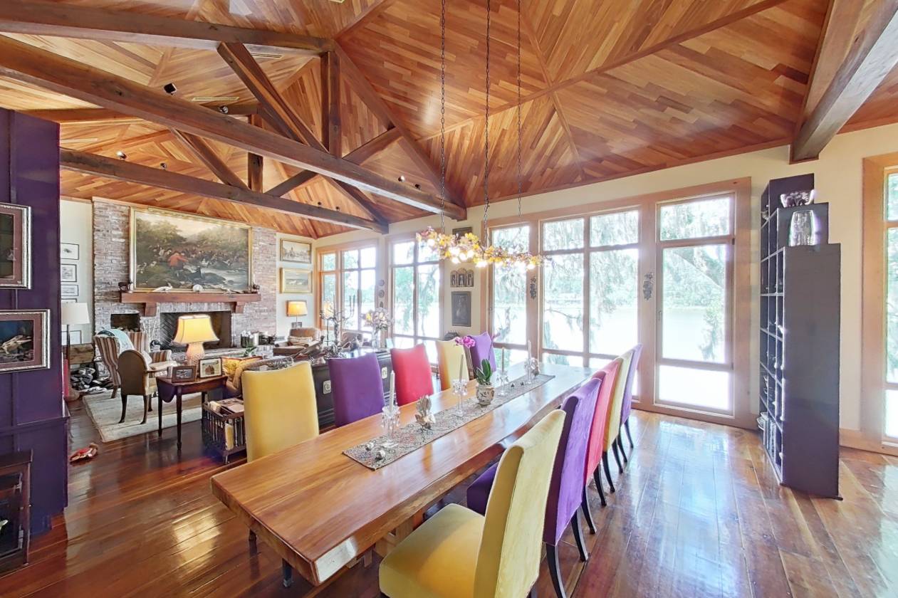 - This one-of-a-kind Leed Gold Certified home sits above a salt pond, offering a setting that is as peaceful as it is picturesque. The siding of the house is Sinker Cypress from the LA Bayou. Inside the home all the flooring was sourced from a barn at a Turkey Farm in Tennessee (1902). Other unique aspects of this home include Black Walnut beams from a Tobacco Barn in Southern Ohio, all the wallpaper is from recycled newspaper, the large wooden doors to the bedroom and guest house were commissioned for the home in India, the windows are hurricane proof, the HVAC is geothermal providing good energy efficiency and the floors are heated throughout. The home also includes a spacious two car A/C controlled garage, an elevator to the main living area, a wine room and a two hour fire safe vault. The open-concept kitchen, dining and living areas flow seamlessly together, framed by a wall of windows that flood the home with natural light and provide breathtaking views of the water. Step out onto the spacious porch, with woodburning fireplace and bricks sourced from an old shipping warehouse in Savannah. The two guest suites are connected by a covered breezeway and overlook the water offering a true retreat for visitors. This home offers all the essentials for a nature lover as you take in all the ever changing scenery over the salt ponds from just about every room in the house.