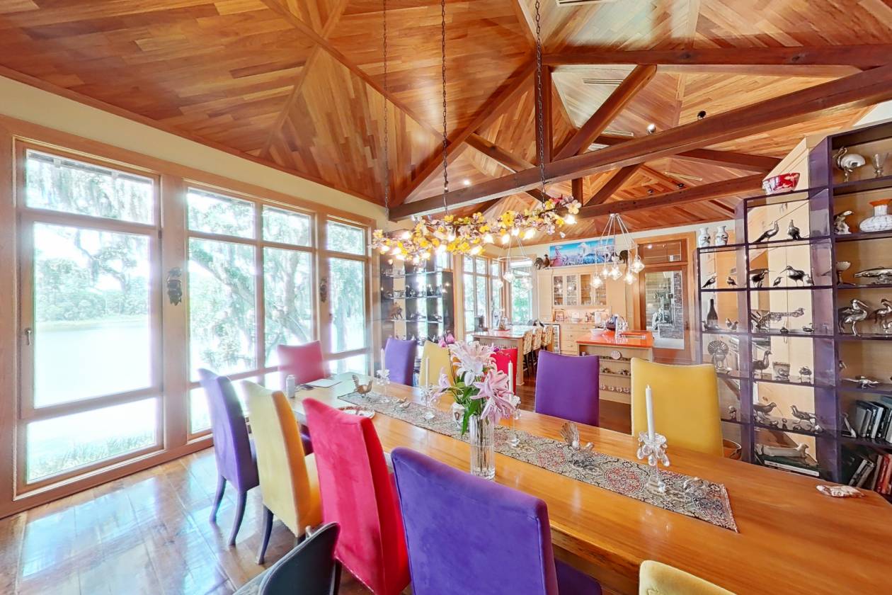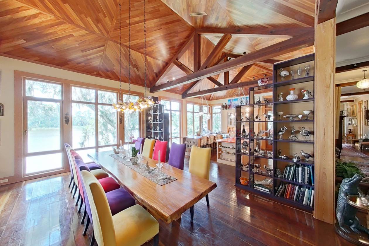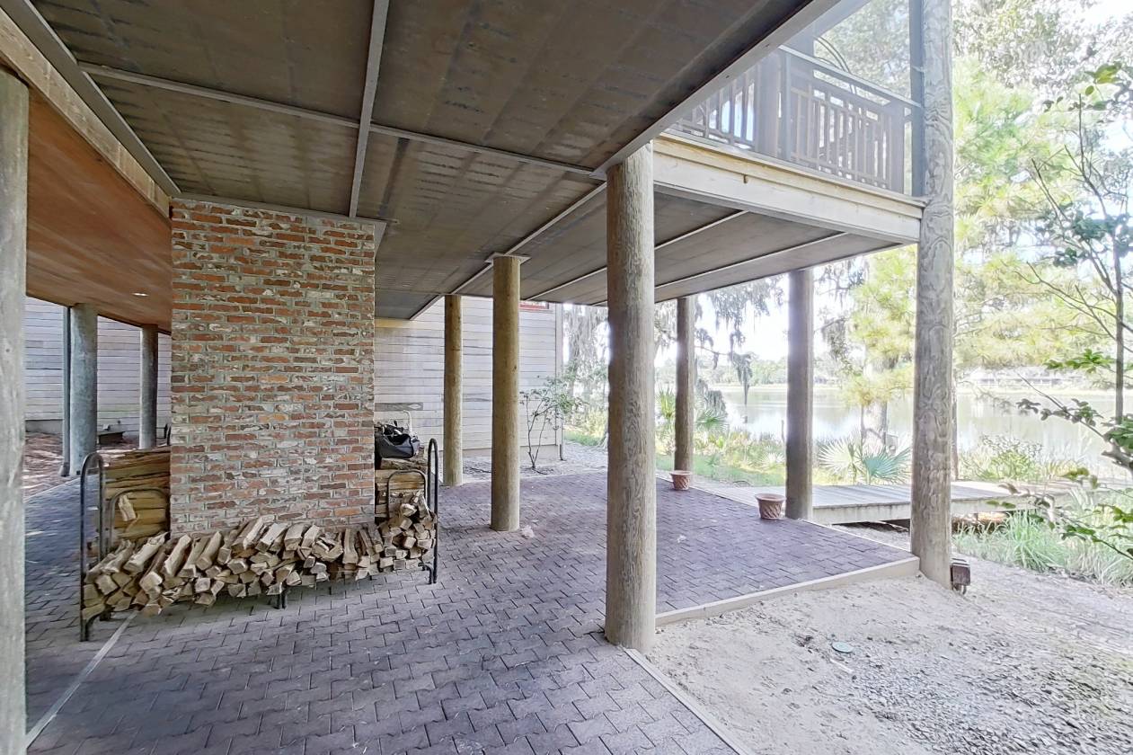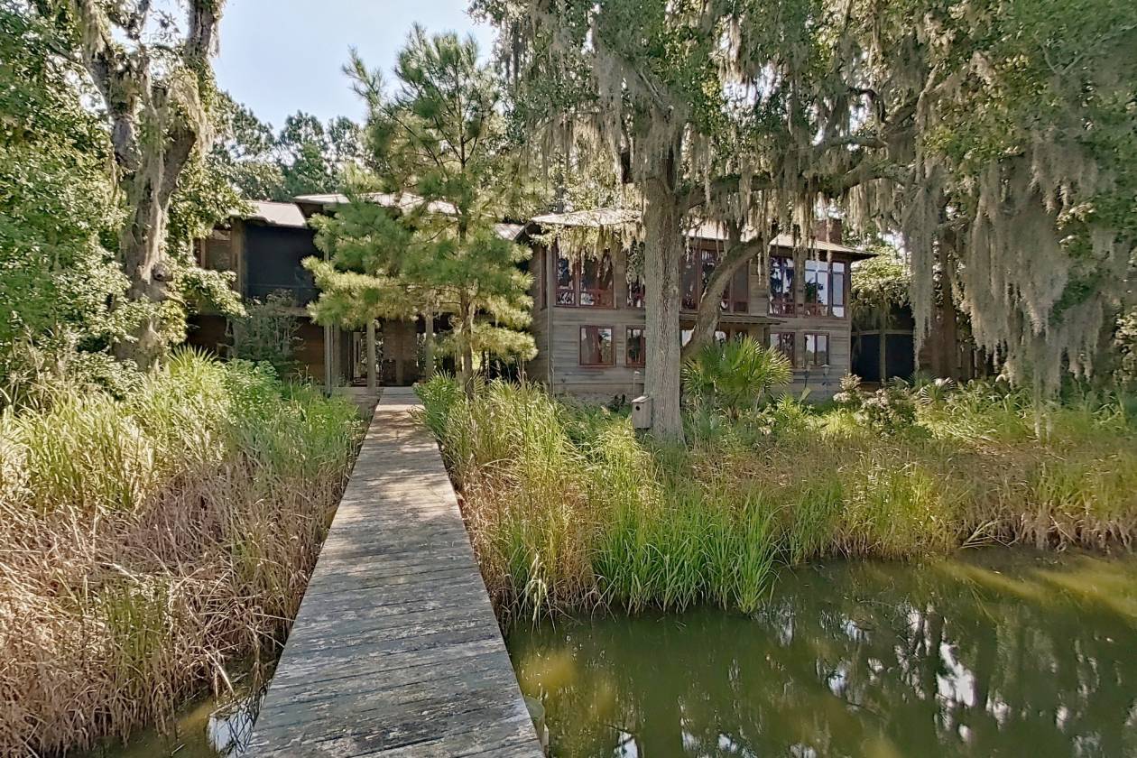 - This one-of-a-kind Leed Gold Certified home sits above a salt pond, offering a setting that is as peaceful as it is picturesque. The siding of the house is Sinker Cypress from the LA Bayou. Inside the home all the flooring was sourced from a barn at a Turkey Farm in Tennessee (1902). Other unique aspects of this home include Black Walnut beams from a Tobacco Barn in Southern Ohio, all the wallpaper is from recycled newspaper, the large wooden doors to the bedroom and guest house were commissioned for the home in India, the windows are hurricane proof, the HVAC is geothermal providing good energy efficiency and the floors are heated throughout. The home also includes a spacious two car A/C controlled garage, an elevator to the main living area, a wine room and a two hour fire safe vault. The open-concept kitchen, dining and living areas flow seamlessly together, framed by a wall of windows that flood the home with natural light and provide breathtaking views of the water. Step out onto the spacious porch, with woodburning fireplace and bricks sourced from an old shipping warehouse in Savannah. The two guest suites are connected by a covered breezeway and overlook the water offering a true retreat for visitors. This home offers all the essentials for a nature lover as you take in all the ever changing scenery over the salt ponds from just about every room in the house.