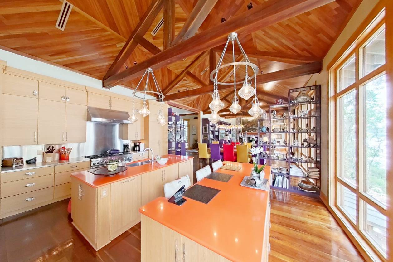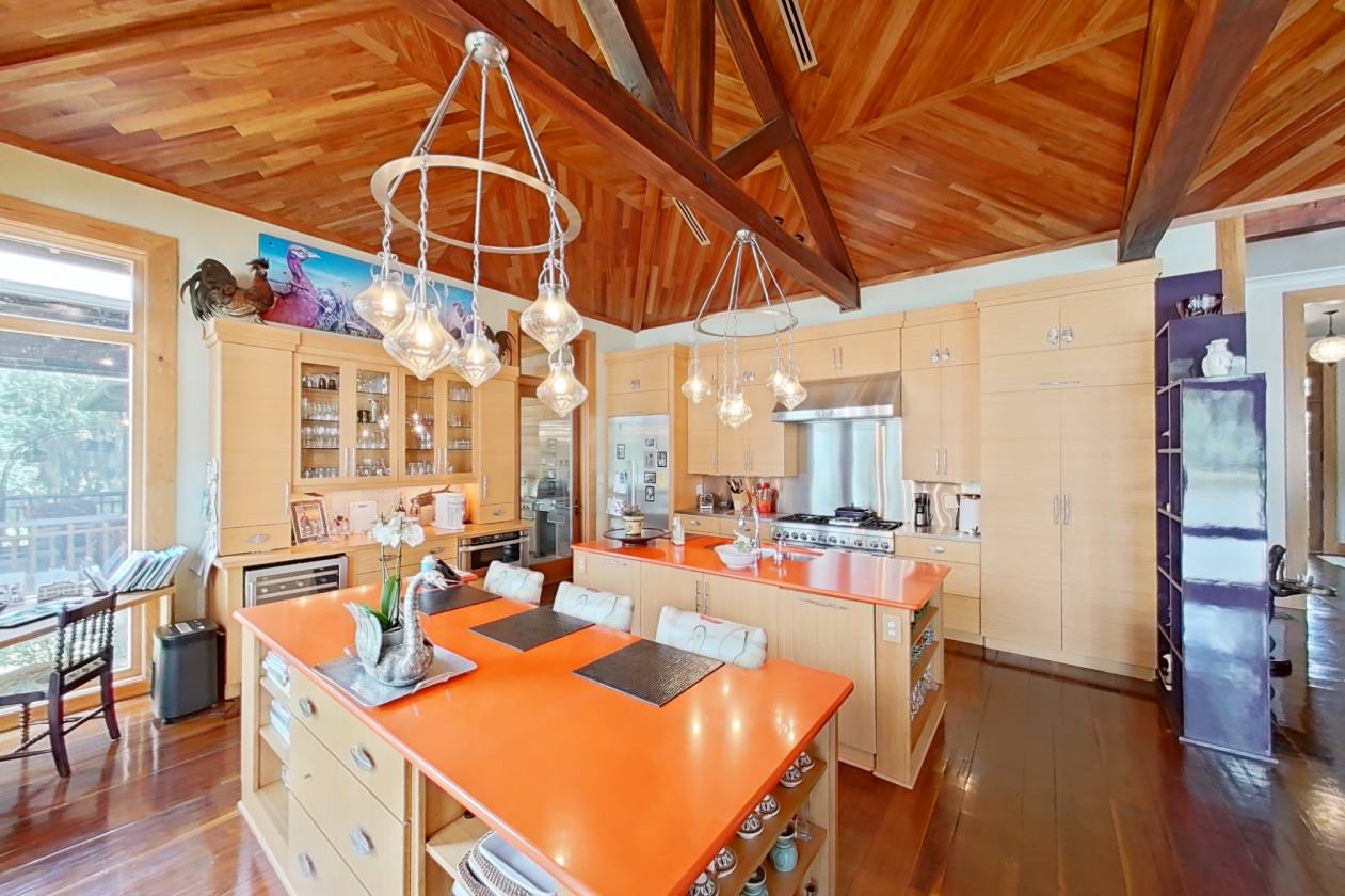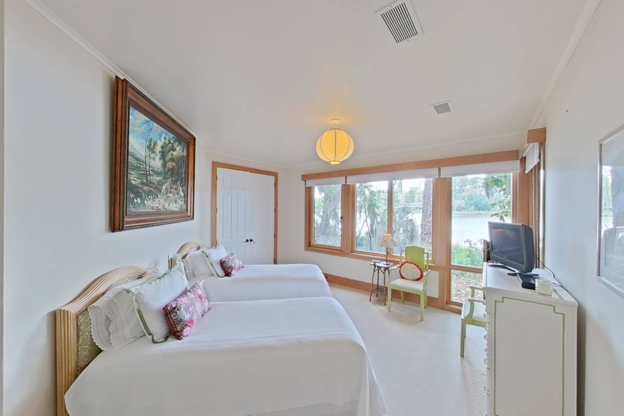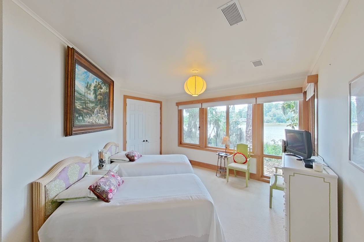 - This one-of-a-kind Leed Gold Certified home sits above a salt pond, offering a setting that is as peaceful as it is picturesque. The siding of the house is Sinker Cypress from the LA Bayou. Inside the home all the flooring was sourced from a barn at a Turkey Farm in Tennessee (1902). Other unique aspects of this home include Black Walnut beams from a Tobacco Barn in Southern Ohio, all the wallpaper is from recycled newspaper, the large wooden doors to the bedroom and guest house were commissioned for the home in India, the windows are hurricane proof, the HVAC is geothermal providing good energy efficiency and the floors are heated throughout. The home also includes a spacious two car A/C controlled garage, an elevator to the main living area, a wine room and a two hour fire safe vault. The open-concept kitchen, dining and living areas flow seamlessly together, framed by a wall of windows that flood the home with natural light and provide breathtaking views of the water. Step out onto the spacious porch, with woodburning fireplace and bricks sourced from an old shipping warehouse in Savannah. The two guest suites are connected by a covered breezeway and overlook the water offering a true retreat for visitors. This home offers all the essentials for a nature lover as you take in all the ever changing scenery over the salt ponds from just about every room in the house.