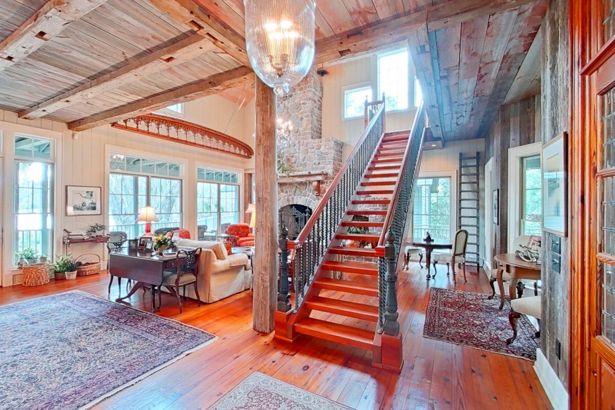 - Set on a spectacular pond-front site framed by magnificent live oaks and blooming magnolias, this extraordinary custom compound is a true sanctuary. Thoughtfully designed and impeccably crafted, the home showcases antique beams, imported stone, multiple fireplaces, and exquisite custom woodwork throughout.