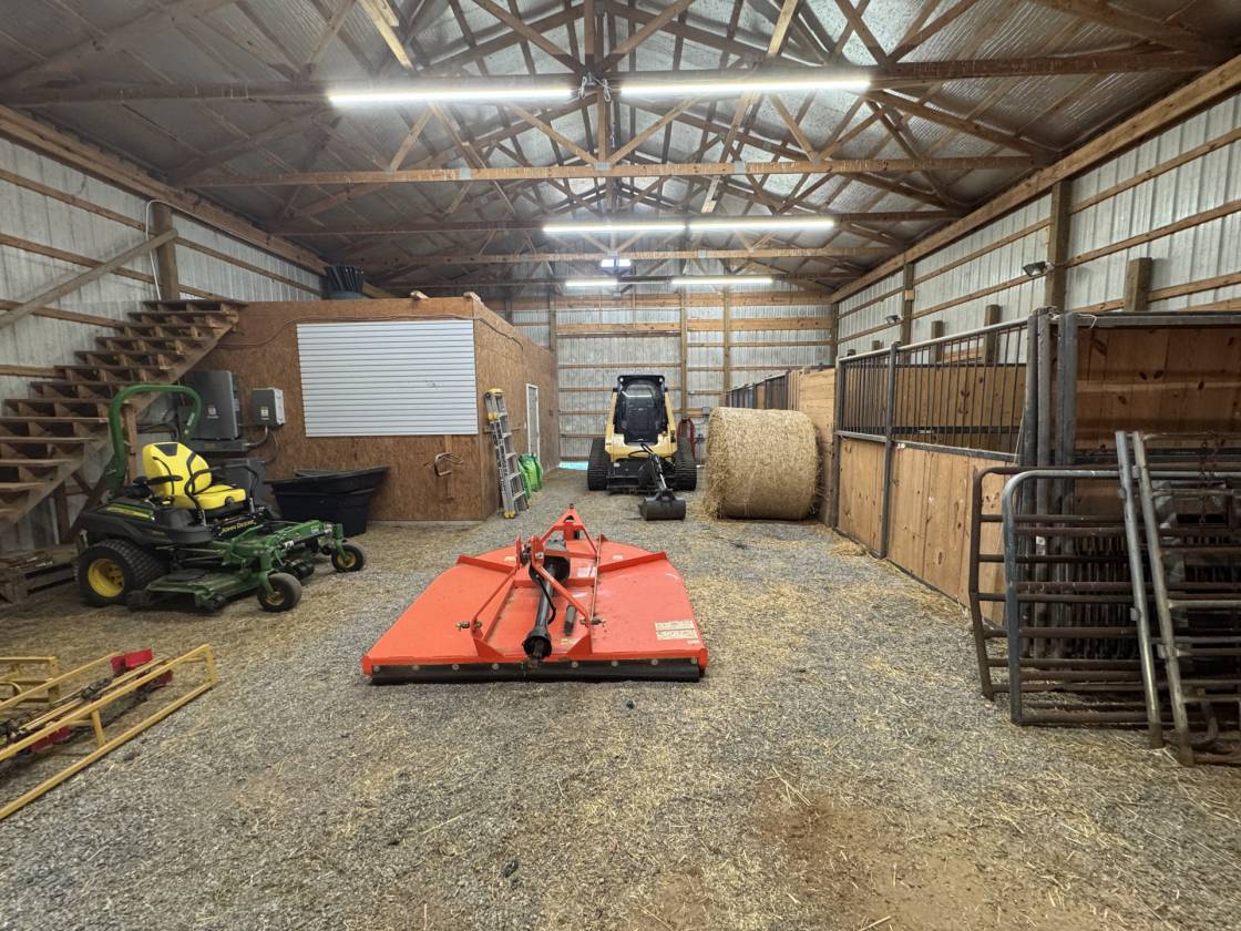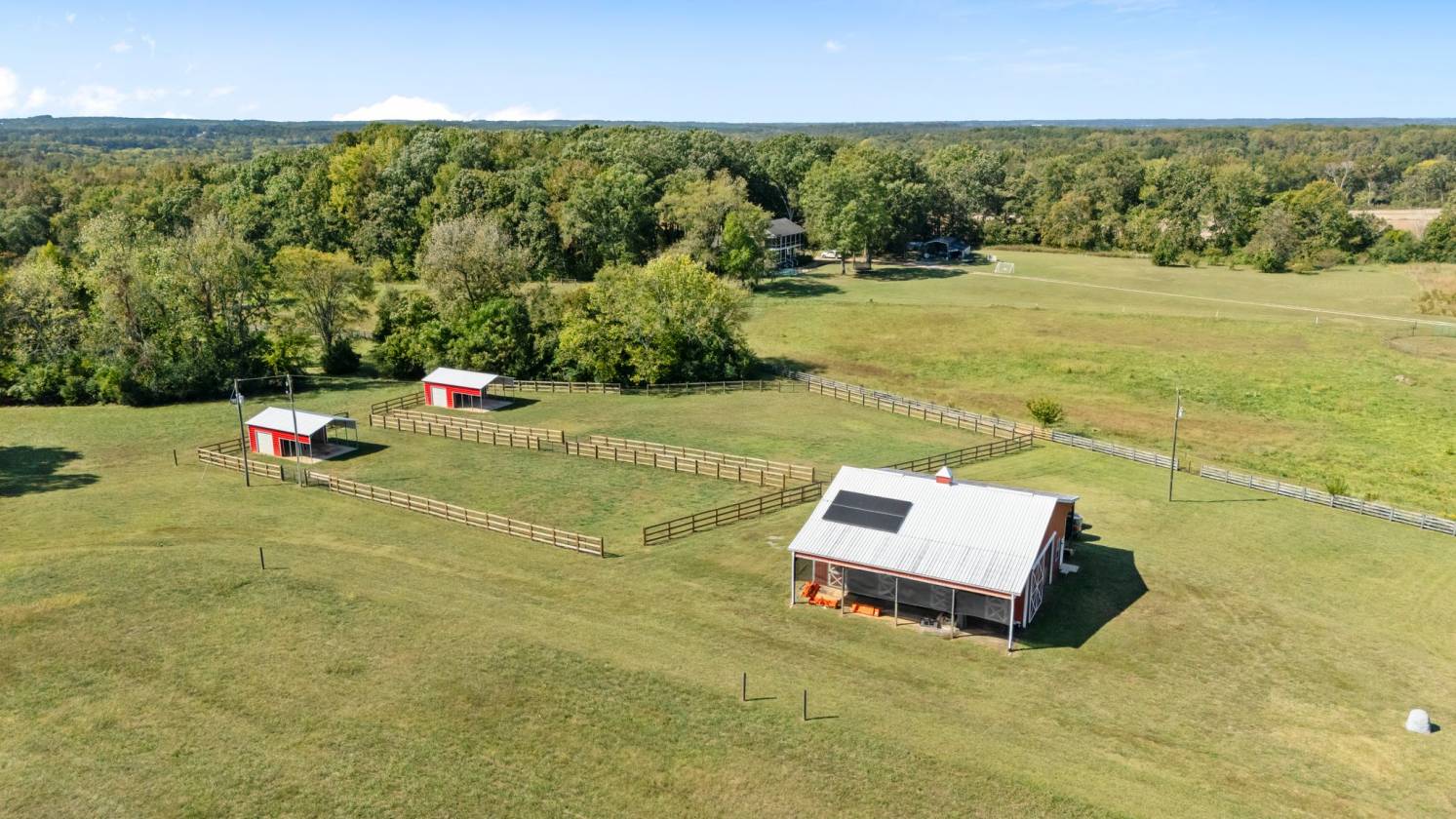 Designed for the working or recreational farmer, this property includes: *A 4-stall barn with a large tack room, feed storage, and wide overhangs on each side. * Two run-in sheds, each with large fenced paddocks for horses or livestock * Additional storage areas for equipment and supplies * 3 stall shed row barn for smaller livestock * Chicken coop with large fully enclosed run * Property perimeter fully fenced and gated. * Productive, gently rolling pastureland ideal for grazing or future agricultural use