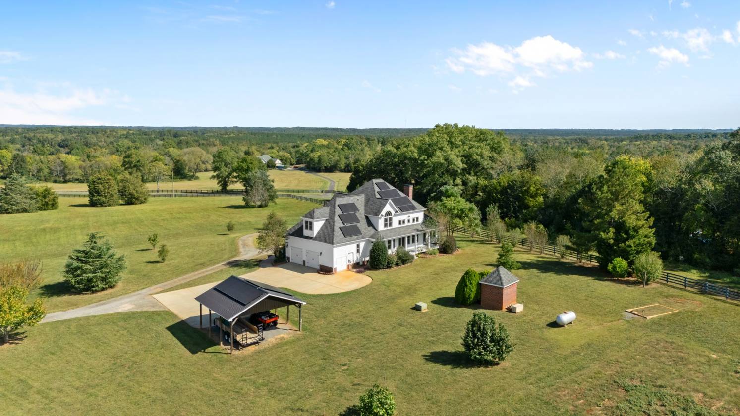 Exceptional 15.7-Acre Farm with Custom Home, Solar Power & Horse Facilities Welcome to your dream farmstead! This 15.7-acre property combines modern efficiency with classic Southern charm, featuring a 3,440 sq. ft. custom-built plantation-style home and turnkey agricultural amenities ready for recreational enjoyment, horses, livestock, or hobby farming. The 4-bedroom, 3.5-bath home offers spacious living with quality craftsmanship throughout—high ceilings, custom trim, and wide covered porches perfect for taking in the serene views. The open-concept kitchen and living area are ideal for family gatherings after a day on the farm, while the primary suite on the main level provides a quiet retreat with a spa-style bath and generous closet space. Two large walk in pantries, chef inspired appliances and ample counter space are ideal for your family cook. Upstairs are 3 additional bedrooms and oversized bonus room with its own closet space.