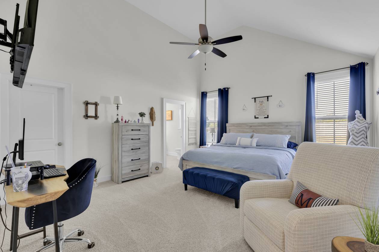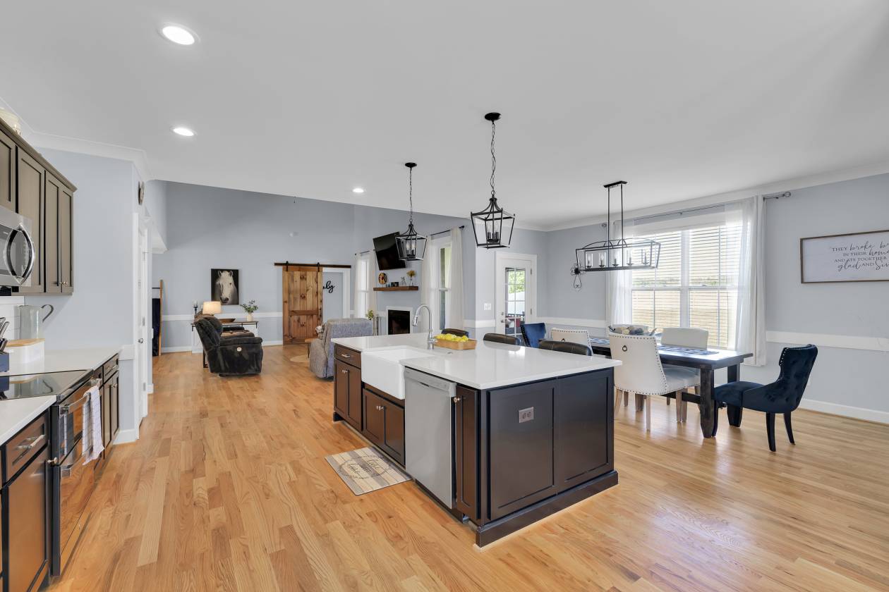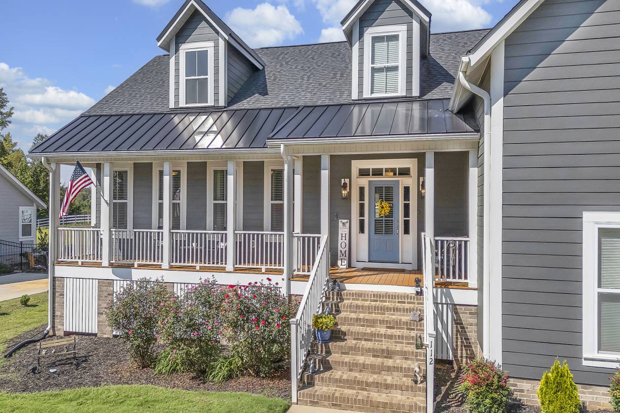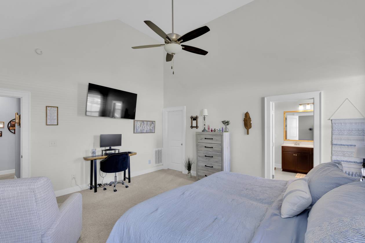 Welcome to Saddlehorn—an equestrian community where horse lovers enjoy 75+ acres of community pastures, a fully stocked fishing pond, and miles of riding and walking trails. Set on a generous 0.73-acre lot with pasture views, this modern farmhouse offers 2,800+ sq ft of thoughtfully designed living space and the equestrian lifestyle so many buyers search for: “horse property for sale,” “equestrian community with trails,” and “homes near pastures.” A sweeping 40-foot rocking-chair front porch sets a welcoming tone. Inside, cathedral ceilings, rich hardwood floors, and a striking black fireplace anchor the open-concept great room. Sliding barn doors add rustic sophistication. The chef’s kitchen features bold black shaker cabinetry, white quartz counters, a farmhouse sink, a large island with bar seating, and a sunny bay-window breakfast nook—perfect after an early morning trail walk. The main-level primary suite is a true retreat with vaulted ceilings, an oversized tiled shower with rainfall and wall heads, dual vanities, and a spacious walk-in closet. Two guest bedrooms share a stylish full bath. Need multi-generational flexibility? The newly finished upstairs offers a potential second primary/guest suite with a private bath—ideal for extended stays or a quiet office/media space. Out back, a white iron fence frames the private yard and opens to serene views of neighboring horse pastures. There’s room for a pool (preliminary plans available), and the vaulted, screened-in porch invites year-round indoor-outdoor living. A two-car garage, storage shed with riding mower, and low HOA fees complete the package. Why buyers love Saddlehorn: horse-friendly amenities, access to expansive community pastures, stocked pond, and miles of trails—without sacrificing modern luxury at home. If you’re searching for an equestrian property with pasture views, trails, and a refined farmhouse aesthetic, this is the one. Schedule your private tour today and experience Saddlehorn’s horse-centered lifestyle firsthand.