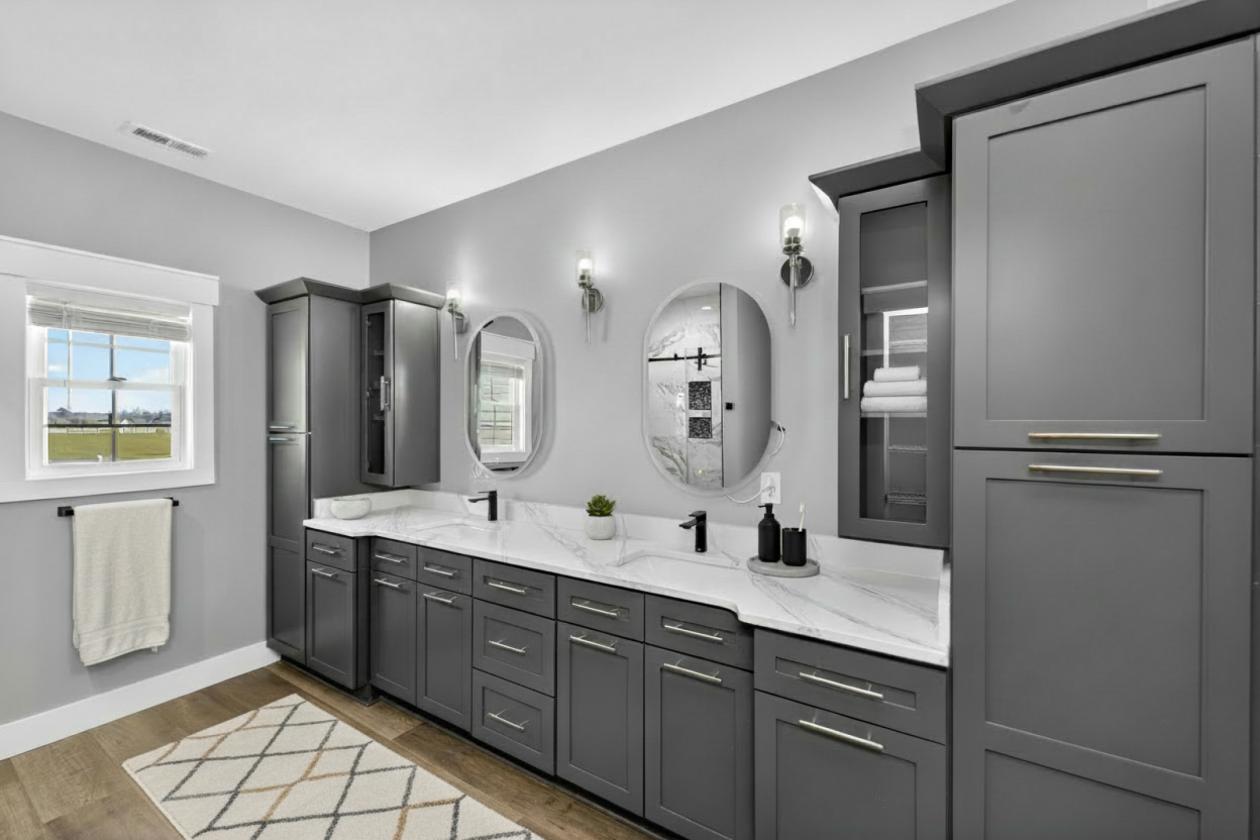 - Custom master bath cabinets and custom tiled shower