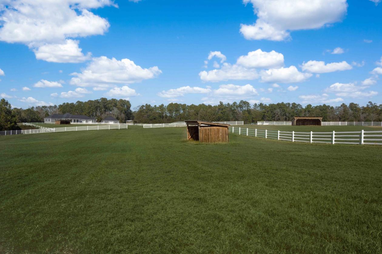 We all say our animals live better than we do, but what if you could have both? On 25.61 acres of rolling fields in Conway, South Carolina, this exceptional equestrian estate offers the rare balance of refined living and serious horse infrastructure. Welcome to a property designed not just for life after work, but for a way of life that is your escape. The 2,357 sq ft ranch home is thoughtfully positioned to overlook the pastures, allowing daily rhythms of farm life to become part of the view. The backyard is fully fenced and allows a safe haven for children and smaller pets. Inside, an open floor plan invites effortless entertaining and relaxed living. The kitchen is anchored by a full Thermador appliance suite, including a 5-burner gas cooktop, oven, microwave, dishwasher, and refrigerator, all serviced by a 200 gallon propane tank. These high end appliances are complemented by quartz countertops, two generous pantries, a large island, and a custom built-in banquette. Open to the living area, this is the kind of gathering space that becomes the heart of the home. The primary suite is a private retreat with tranquil barn views, dual vanities, custom cabinetry, and a beautiful custom shower. Two additional bedrooms share a bath, one featuring a custom walk-in closet. Practical luxury continues throughout with an oversized 1,147 sq ft epoxy-finished garage with custom storage systems, a 235 sq ft additional storage room, attic storage above, and 30 AMP 220-volt outlets. A separate 1,280 sq ft detached garage/workshop, whole-house Generac generator, tankless propane water heater, 2024 roof and HVAC system, and a full security system ensure both comfort, practicality, and preparedness. Equestrians will recognize the quality immediately. The 66 x 72 timber-framed barn was designed for airflow and efficiency, featuring six 14x14 stalls with European fronts and dutch doors, 12 automatic waterers and 12 drum fans (both inside and out to accommodate future run outs), a concrete center aisle, and a 14x14 wash stall with hot and cold water. Plans and materials are available should you desire to add run outs from the dutch doors at each stall. The climate-controlled tack room includes butcher block grain prep counters, an oversized sink, rough in for a future bathroom, and a loft above for storage. There is also a 20x20 timber-framed hay shed for safe and clean storage of your hay deliveries. No need was left out of the planning for this state of the art barn! Six established pastures are fenced with Centaur HTP® and Hot Rail HTP® systems set on pressure-treated posts, and planted in Tiff 9 and Coastal Bermuda grass. Frost-free hydrants with water shutoffs give you peace of mind in the changing seasons, and five 12x24 run-in sheds provide additional shelter under their metal roofs. For the versatility you need with horses, these pastures range in size from 1/2 acre to 3 acres. A 70 x 215 riding arena, prepared by Clint Bertelan for final footing, and a perimeter riding trail around the property create immediate usability, and plans for a future covered arena are also available. The front 3-acre field presents further opportunity to expand riding space, increase pasture, or potentially subdivide off for income or to create a family estate. Location completes the offering. Positioned within reach of the Southeast’s premier show circuits — Tryon, Aiken, Camden, and Southern Pines — and just 30 minutes to the renowned Parelli Natural Horsemanship Training Facility, this property connects you to both competitive excellence and lifelong horsemanship education. With no HOA, no covenants or restrictions, and no flood required, this is an uncommon opportunity to establish your own equestrian headquarters in coastal South Carolina. If you are looking for an address that matches your ambition, schedule your private tour today!