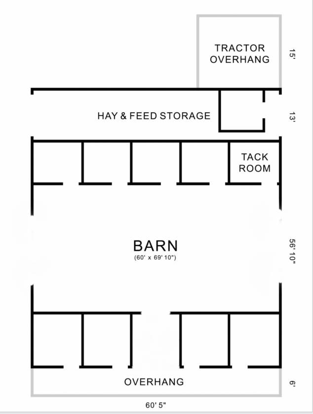 - - 9 stall barn with wide alleyway