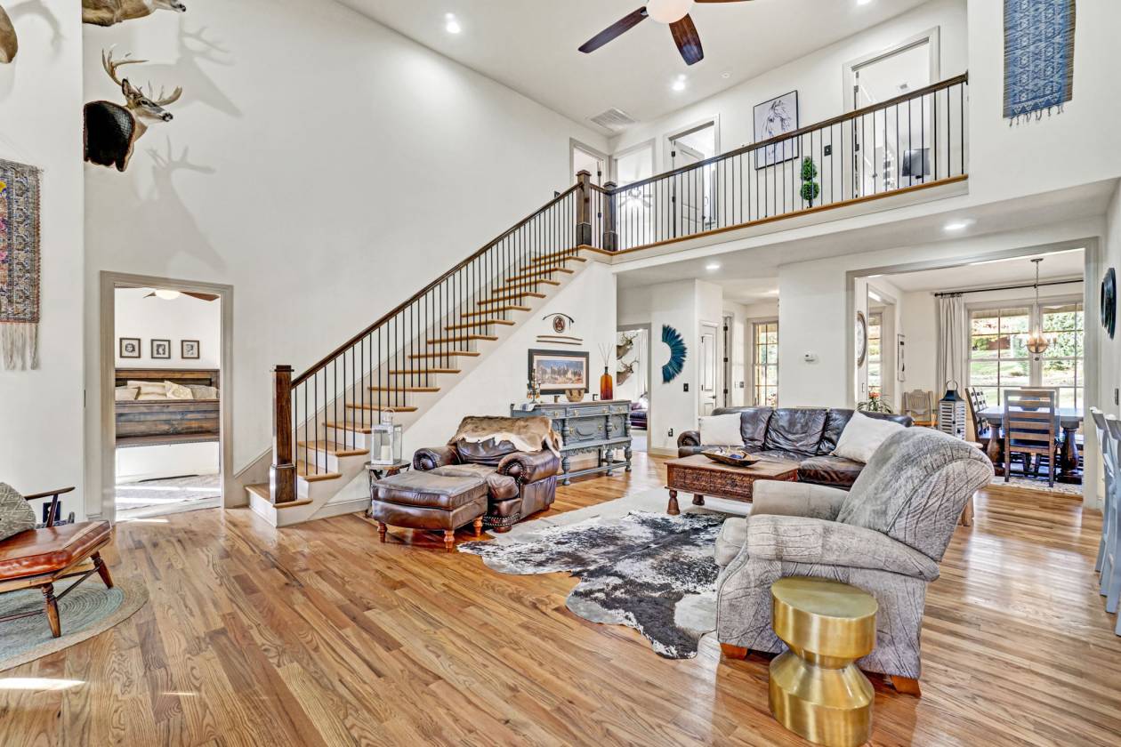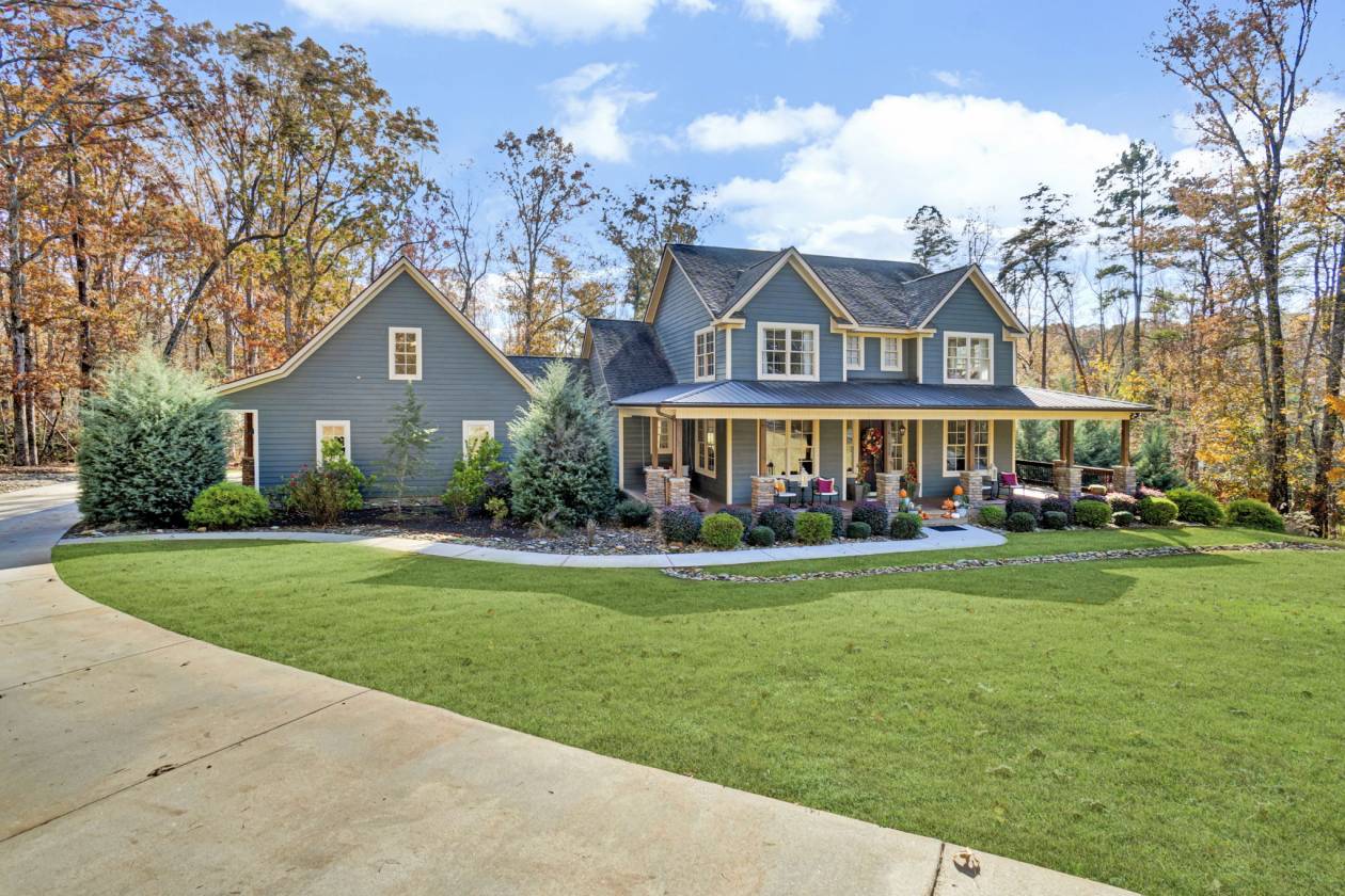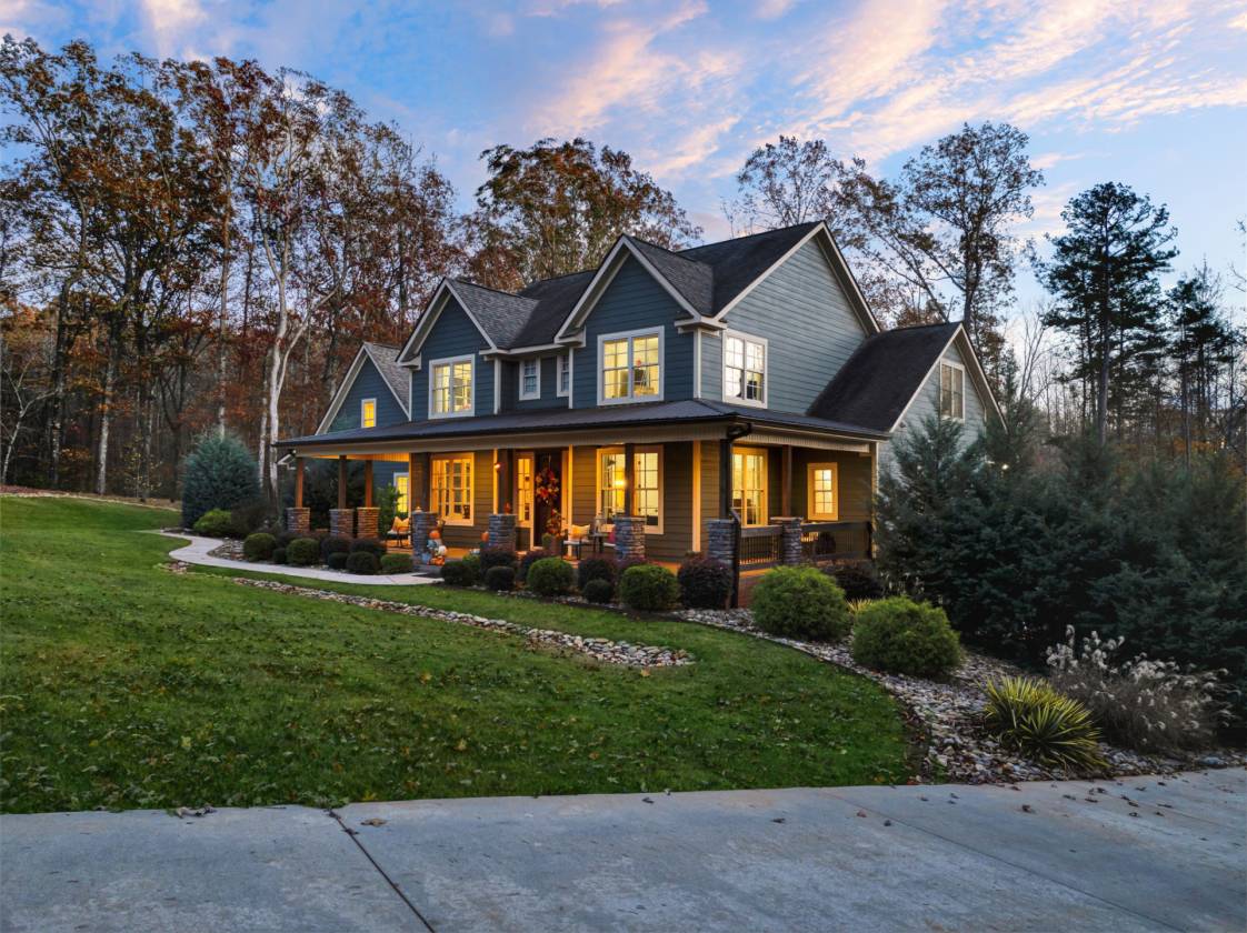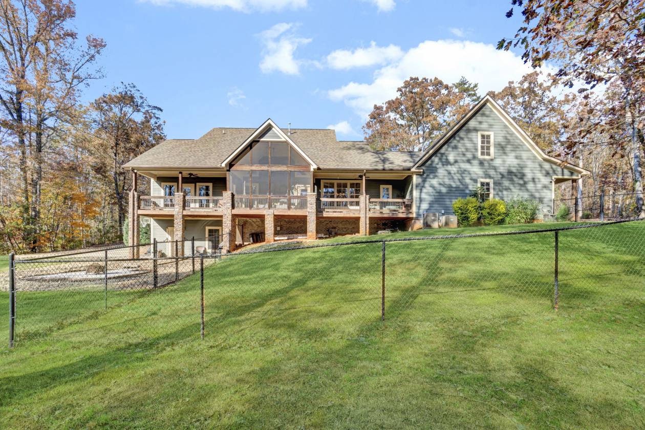 At the end of a serene cul-de-sac, this immaculate 2016 custom-built estate rests on a private 6.17-acre parcel, offering approximately 4,000 sq ft of thoughtfully designed living space. Even the lower level impresses with fire-resistant slat-rock ceilings, blending durability with sophistication. Every corner of this home speaks to exceptional craftsmanship, privacy, and a sense of freedom — a place where space and elegance coexist effortlessly. A striking, oversized entry door welcomes you, immediately commanding attention and setting the stage for the elegance that unfolds within. Through the foyer, the home reveals a luxurious open-concept layout where the living room becomes the heart of the home: soaring 18-foot ceilings and a floor-to-ceiling stone gas fireplace create a dramatic yet inviting centerpiece, perfect for entertaining or quiet evenings. Flowing seamlessly from the living room, the chef’s kitchen is a masterpiece of both style and function. Anchored by a grand island, it features a built-in gas stove with over-the-range microwave convection oven and a large copper farmhouse sink. Soft-close cabinetry, granite countertops, and a stylish tile backsplash complete the picture, while the thoughtful main-level layout accommodates a breakfast nook, formal dining room, dedicated office, walk-in laundry, full guest bathroom, and the primary suite with a luxurious ensuite. For added luxury, this home is equipped with a tankless hot water heater, providing endless hot water and energy-efficient performance throughout. The primary suite serves as a serene retreat, boasting a spacious walk-in closet and a spa-like ensuite with a double vanity sink, jacuzzi tub, tile flooring, and a separate walk-in tile shower, while soft carpeting in the suite and two additional upstairs bedrooms adds warmth and comfort, complemented by hardwood that flows seamlessly across the main floor, stairs, and upper hallway. Upstairs, a generous flex room, the 2nd and 3rd bedrooms each with walk-in closets, a full bathroom, and a walk-in attic create versatile spaces for family, guests, or storage, combining functionality with refined elegance. Above the garage, the 4th bedroom/flex room continues the home’s elegant, rustic charm with cedar LVP flooring and cedar tongue-and-groove ceiling paneling, including its own bath and space for a closet — ideal as a guest suite, media room, or additional bedroom. The lower-level 5th bedroom showcases rich cedar LVP flooring, a walk-in closet, and a bath prepped for a shower, toilet, and sink, with water, electric, and drains already installed. Both spaces were newly completed in September 2025. This home offers five garage spaces, including a 2-car garage on the main level and a 3-space tandem garage on the lower level. Dual driveways provide convenient access to both levels for guests, hobbies, or storage. Step outside to beautifully maintained yet low-maintenance grounds, with rubber mulch, river rock accents, a 7-zone irrigation system, a lush Zeon Zoysia lawn in the backyard, and Bermuda grass in the front yard. The spacious, wide front porch stretches along the front and sides of the home, perfect for greeting neighbors or soaking in tranquil views — a slice of country living within a welcoming neighborhood. The full-length back porch offers open-air and screened-in areas framed by aluminum screens for easy care. Step onto a concrete patio leading to a firepit surrounded by river rock, where deer may wander nearby, bringing a serene touch of nature to your evenings. A fully enclosed fenced area is ideal for pets or the addition of a pool for leisure and entertainment. A flowing creek winds along a cleared area to the right of the home, while wooded privacy lines the rear. Trails meander throughout the acreage, ideal for walking, golf carts, or 4-wheeling. Gentle topography allows for a future shop, barn, or pool, while a private golf tee box adds a unique recreational touch. The property offers a serene, natural setting with opportunities to enjoy the sights and sounds of the outdoors. Equestrian potential abounds with ample space for fencing and barns. Edens Ridge combines elegance with community, featuring low HOA dues and a covered picnic area with seating and a firepit for neighborly gatherings. Zoned for Six Mile Elementary, R.C. Edwards Middle, and Daniel High School, the estate offers access to exceptional education while providing easy proximity to Lake Keowee and Clemson University. This is more than a home — it is a sanctuary. A place where luxury, convenience, and nature intertwine to create a lifestyle defined by elegance, privacy, and tranquility.