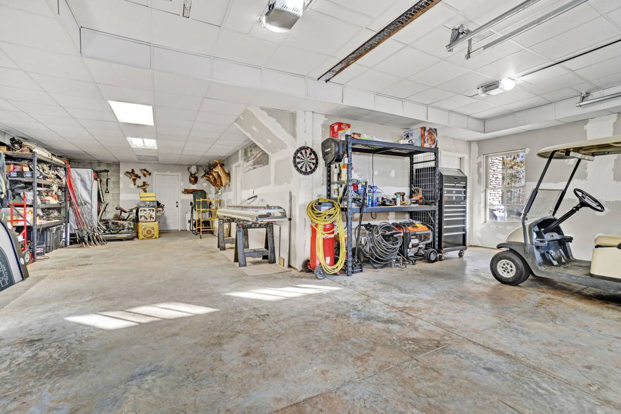 - 5-space garage (2-car main level + 3-car tandem lower level)