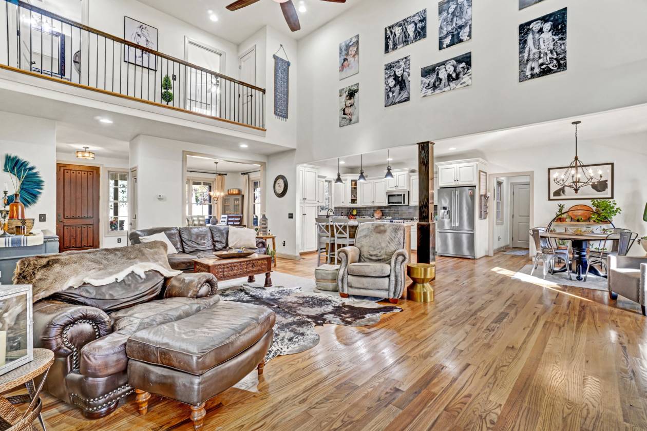 - Open floor plan with vaulted ceilings (