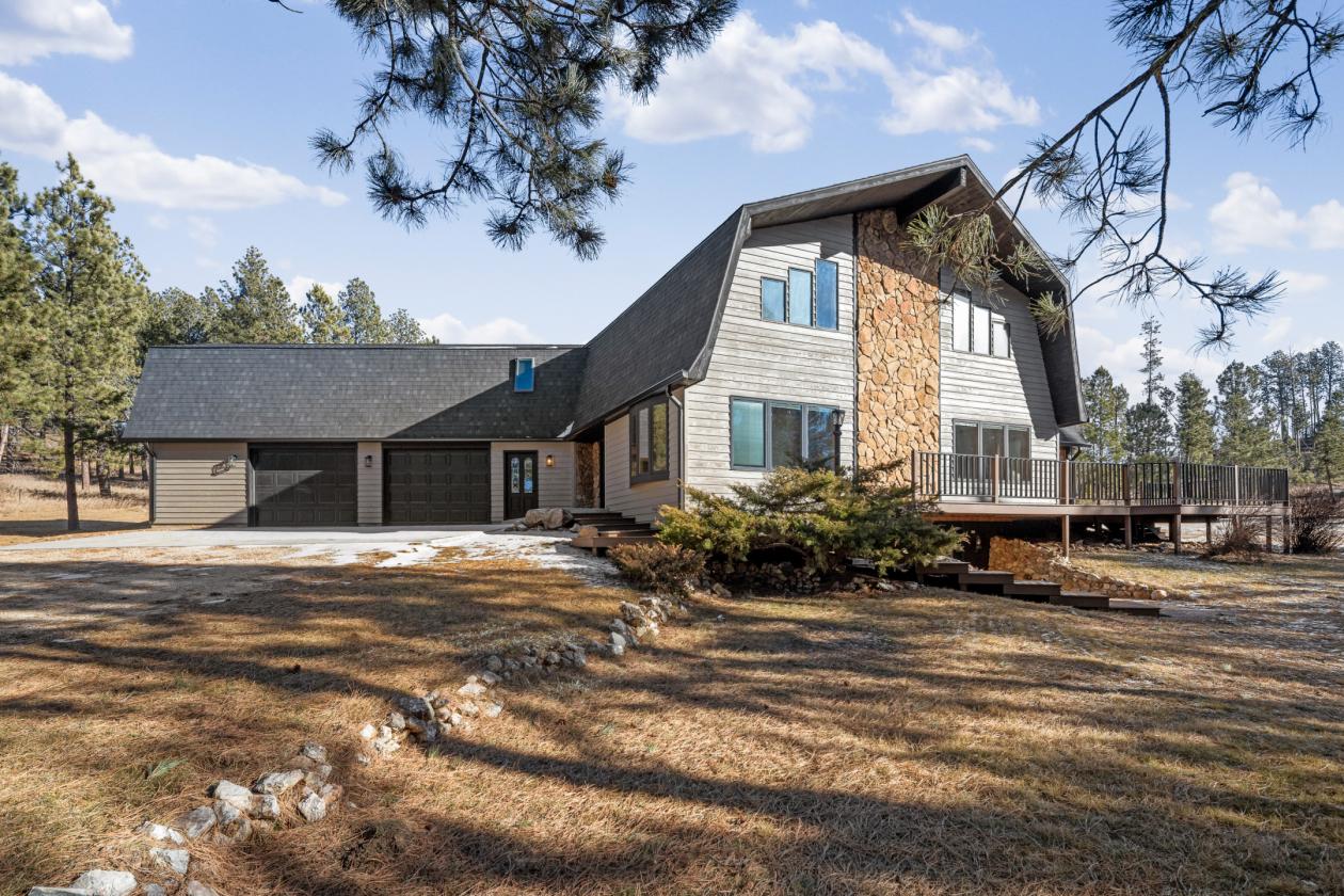 Every detail of this fully-renovated, thoughtfully-crafted custom home has been redesigned to offer elegance & practicality. Features include heated floors, a bright sunroom, endless decks, and a private location near Custer. The main level flows effortlessly, with the spacious primary bedroom retreat providing direct outdoor access, a spa-like ensuite, convenient laundry facilities, and an expansive walk-in closet. The chef’s kitchen equipped with granite countertops & high-end appliances, double ovens, custom cabinetry, serves as the heart of the home, perfect for everyday living & entertaining. Upstairs, you'll find a generous loft area that includes a large family room, an additional bedroom, an office nook, and an upgraded bathroom. This versatile space easily adapts to your needs, whether for relaxation or productivity. The lower level features a private entrance, kitchen, dining room & family room, a second laundry area, utility room, two additional bedrooms, and a full bathroom, making it ideal for multigenerational living or generating rental income. Situated on 5 unrestricted acres with USFS on two sides and direct access to miles of pristine trails, this property is perfect for outdoor enthusiasts, offering ample opportunities for horseback riding, ATV excursions or hikes. Come take a private tour of this ready-to-impress home!
