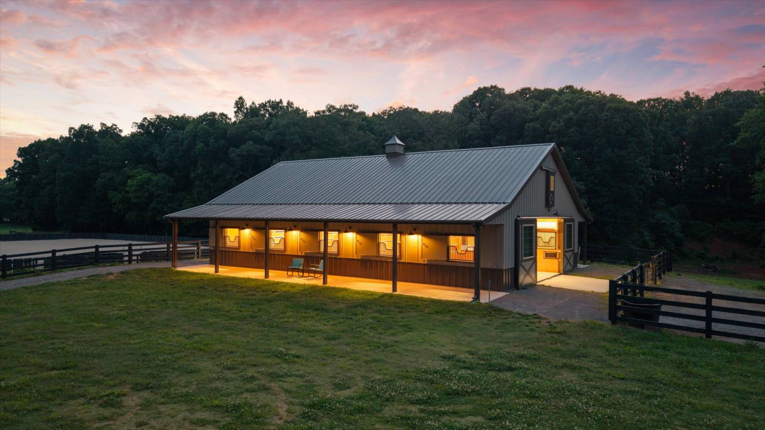 - 9-stall Morton Steel Horse Barn and an air-conditioned tack room, a large open Horse Training Arena, open pastures, and a 3,600 square foot Hangar/Equipment Storage building. Equestrian riders have access to riding trails throughout the entire estate.
