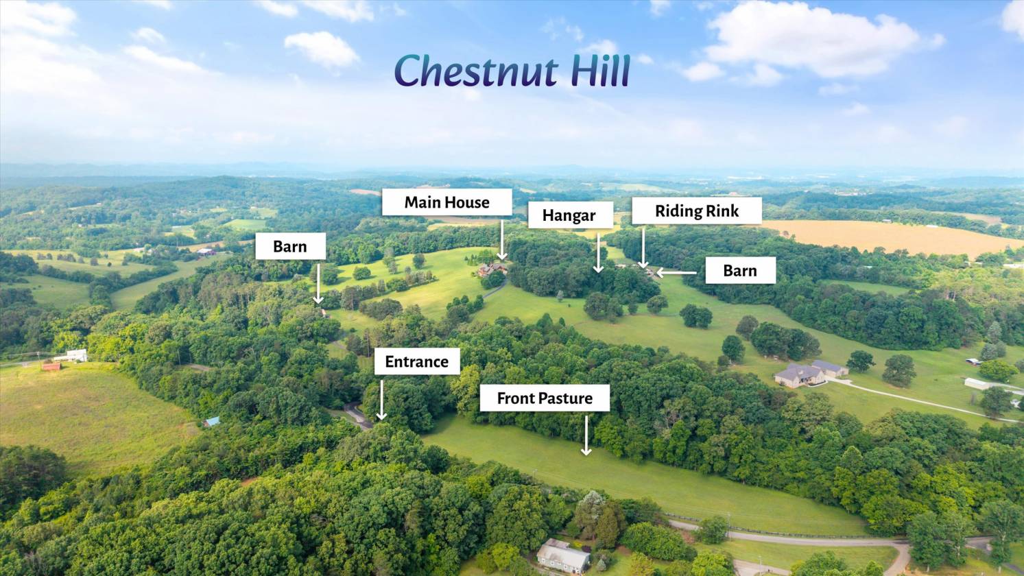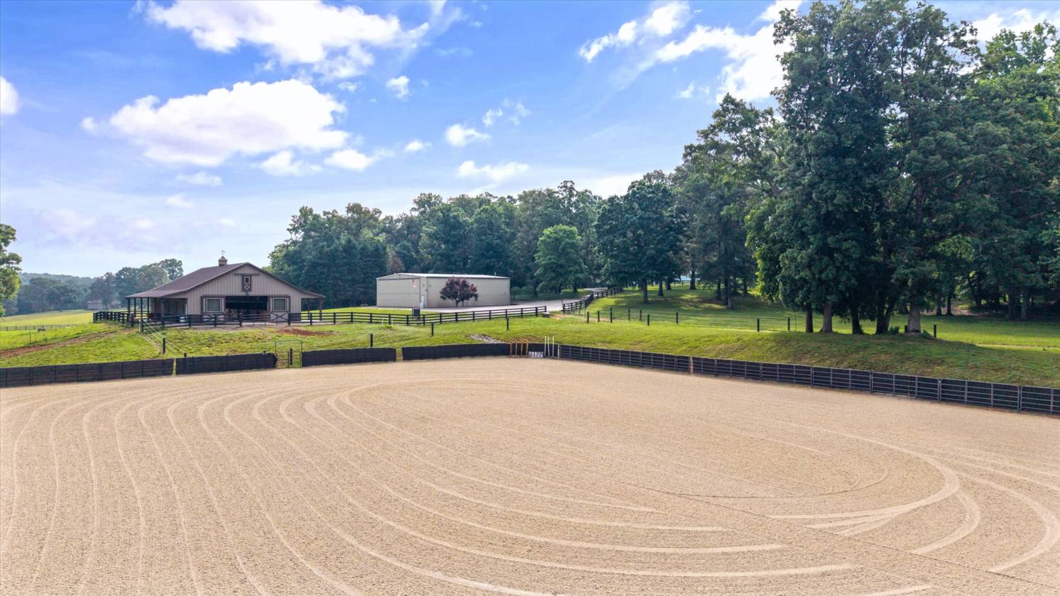 The estate is enhanced by approximately 50 acres of open pastures. It features private gardens, walkways, lush flowers, purposefully placed or retained trees, large open meadows, as well as approximately 30 acres of strategically located woodlands for added privacy. Secluded on the back 20 acres of the estate, you will find Chestnut Hill Ranch featuring a 9-stall Barn (plus air-conditioned tack room), a Horse Training Arena, open pastures, and a 3,600 square foot Hangar/Equipment Storage building. Horses are not limited to just this 20-acre area, as there are riding trails and other open pastures throughout the entire estate.