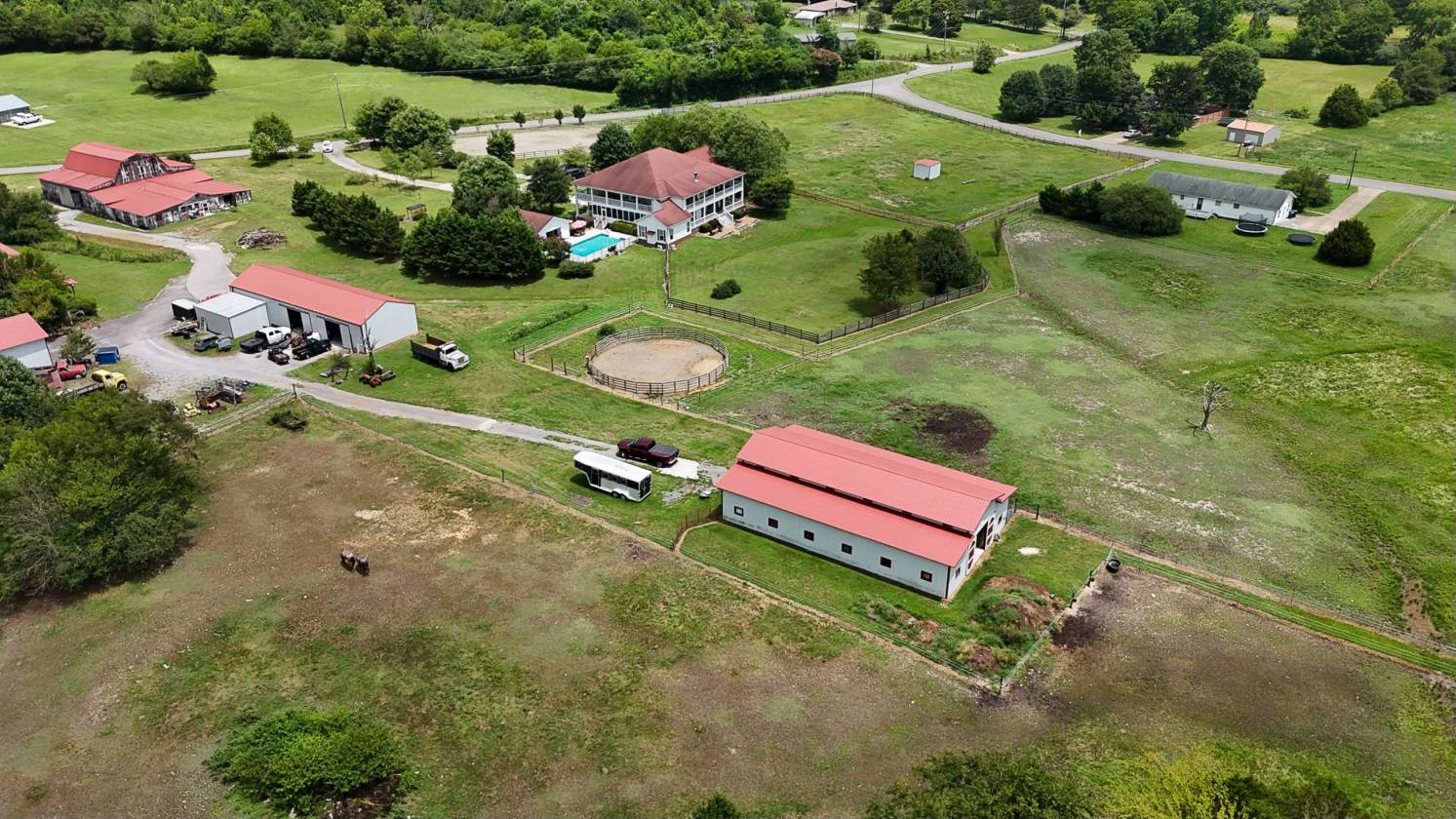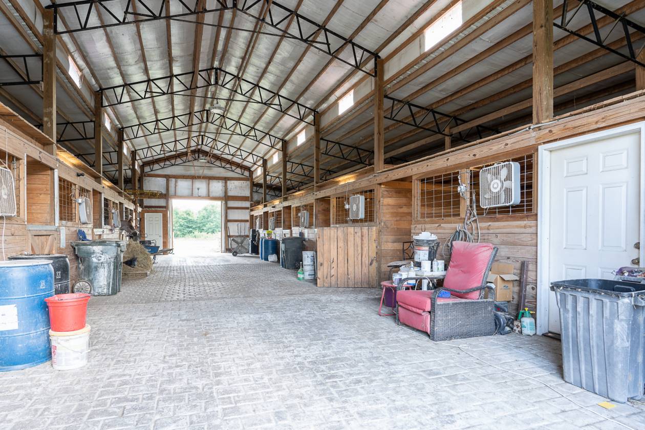A 100+ year-old barn on the property includes an apartment with a kitchen, bathroom, living room, and bedroom — practical for guests or rental use, and offers potential as a wedding or event venue with rustic charm. With current infrastructure, this property has income-producing potential through horse boarding, events, or both.