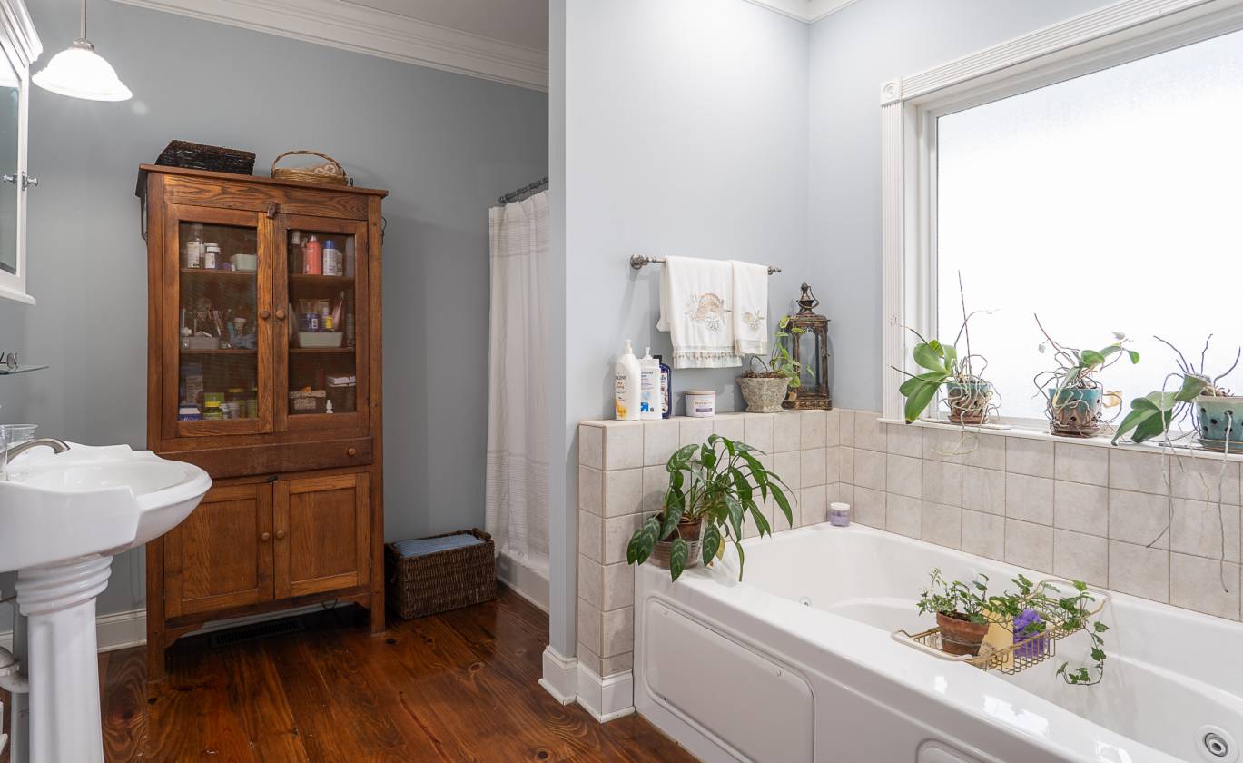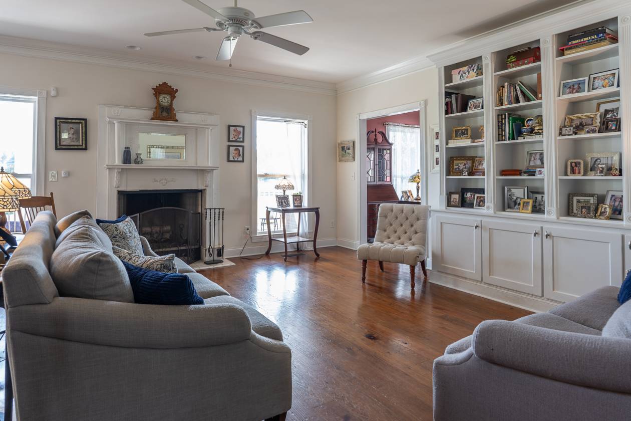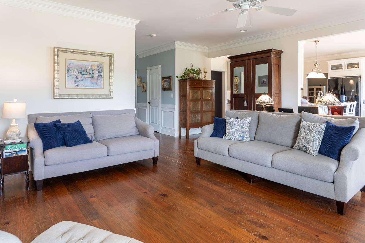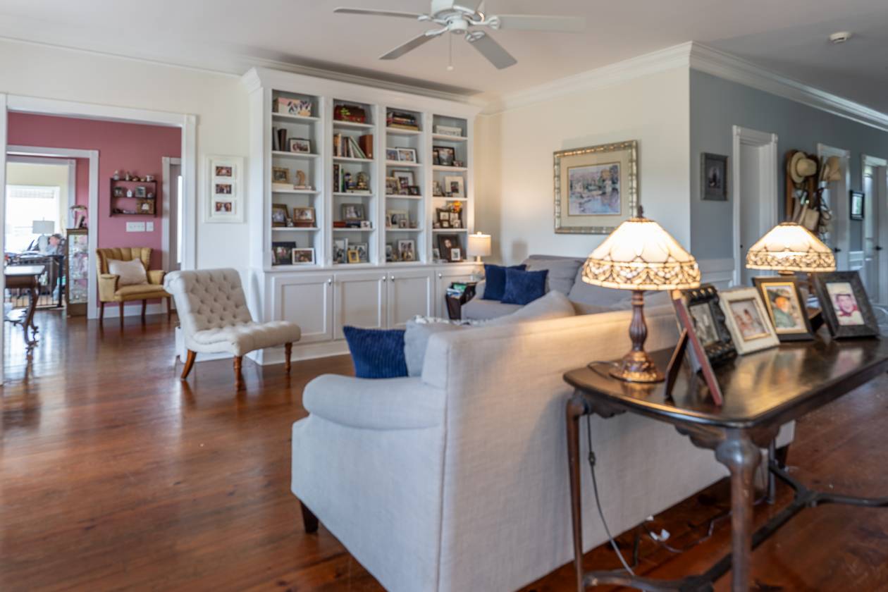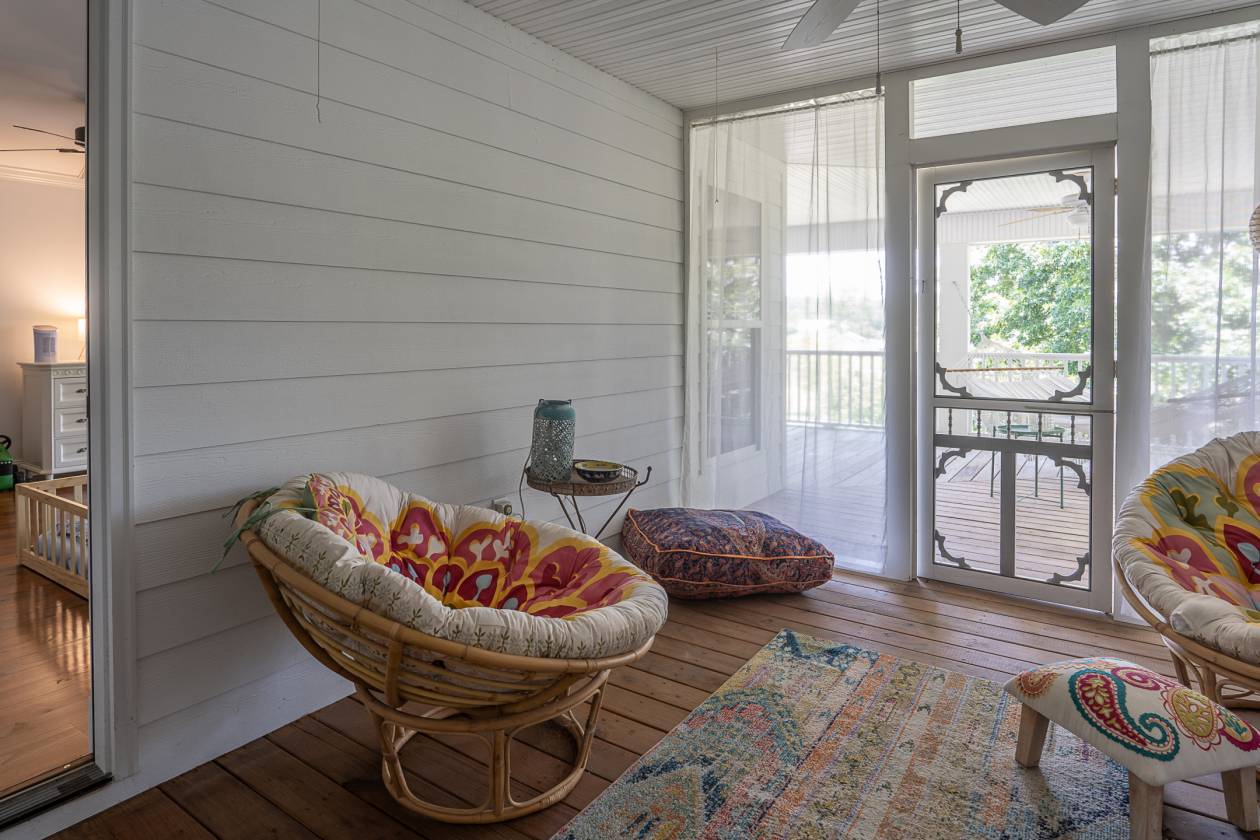 Outdoor living is exceptional, with three screened-in porches, an in-ground pool, and a pavilion featuring a sink, countertop, and bathroom with a shower head for rinsing off. The home is surrounded by an incredible 6,014 sq ft of covered porches with ceiling fans—ideal for entertaining or relaxing in any weather. A large fenced-in backyard provides space for pets or play.