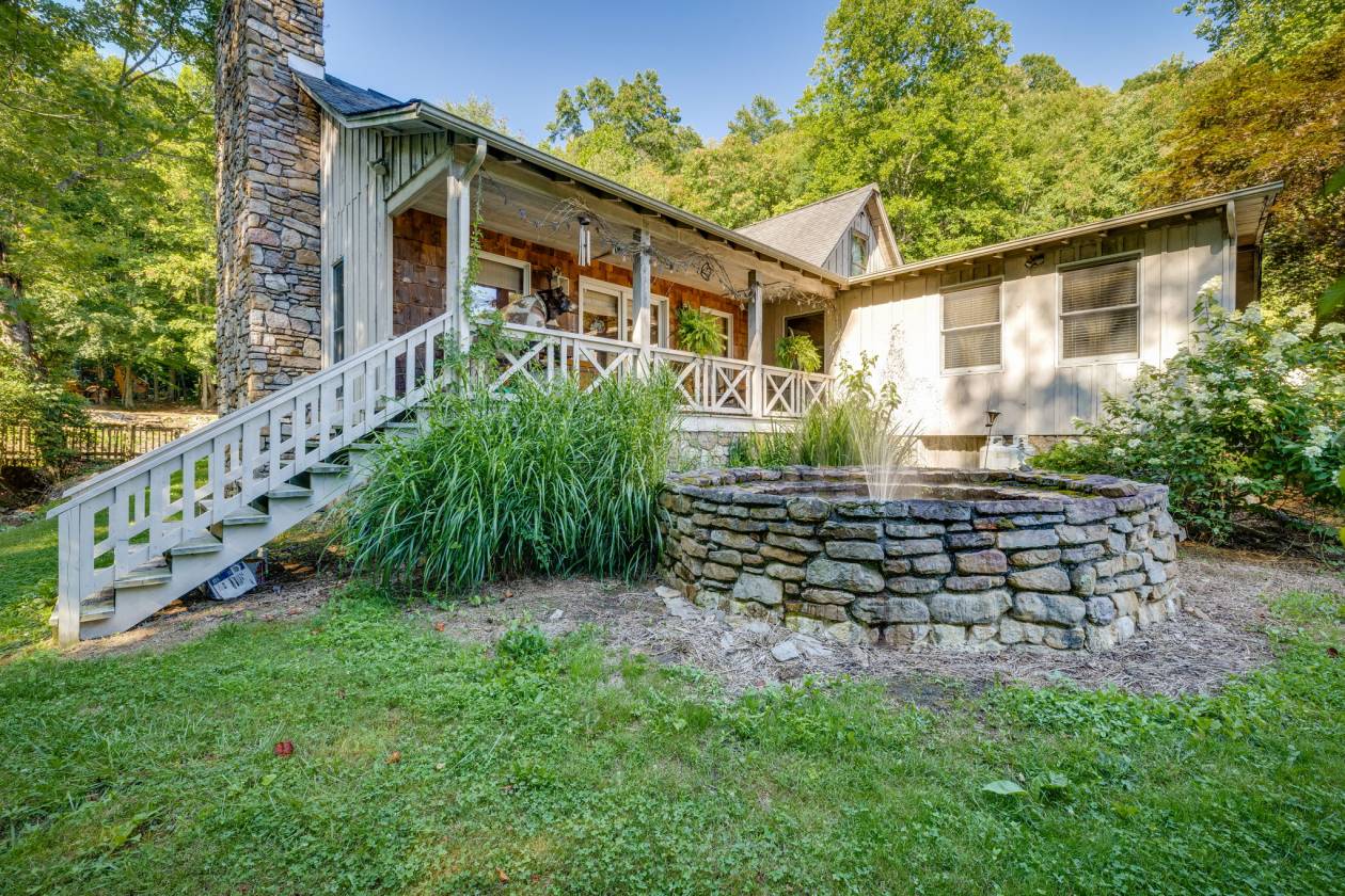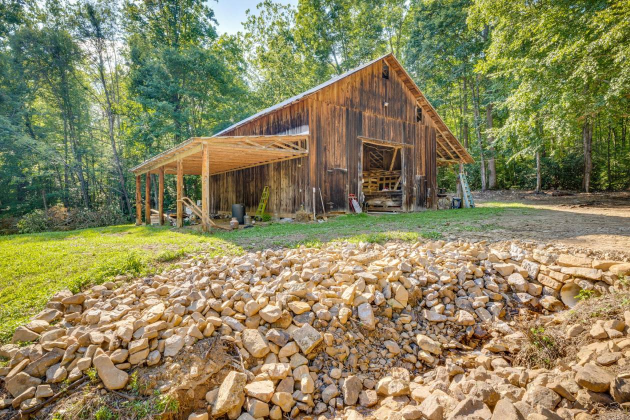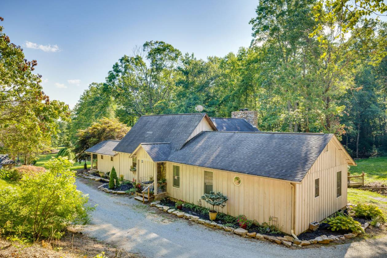 Welcome to a property that perfectly envelopes the natural beauty of East Tennessee in the most magnetic way. Passing through the stone gates onto the 78 acre property, you are met with rolling pastureland, the shade of the trees, and the sounds of one of four bubbling creeks that winds its way through the entire estate. Opportunity for development abounds with the unique amount of gorgeous building sites, framed by mountain views. With 3/4 of a mile of the property bordering the Cherokee National Forest, seclusion and natural splendor is found even beyond your personal haven. Explore the property with pathways and access to the Appalachian Trail, enjoy an expansive garden, and take advantage of the area already set up for beekeeping. Blueberry bushes, blackberries, chestnut trees, holly trees, and mountain laurel are just a few indigenous species found. Envision a magnificent venue or equestrian paradise coming to life. Nestled at the end of the driveway is a peaceful retreat whose walls contain wood and stone that was harvested from the property itself. This home is pleasing in every way for your desire to have a custom lodge that compliments the property it sits upon so perfectly. With details like hardwoods running throughout, soaring vaulted ceilings, a stunning wood-burning stone fireplace that is the centerpiece of the home, domestically harvested wood accents throughout, among many other details, this home delights in so many ways. The spacious primary bedroom and en suite primary bathroom are found on the main level along with expansive custom kitchen, laundry room, dining room, second den that could be converted to a third bedroom, and full bathroom. A loft overlooks the living room and a second bedroom is found upstairs. Outside you will enjoy the natural sounds of the rippling creek and enjoy a well-fed fountain off your covered porch. An oversized barn offers plenty of usability and southern charm. This property is a rare gem and must be experienced!