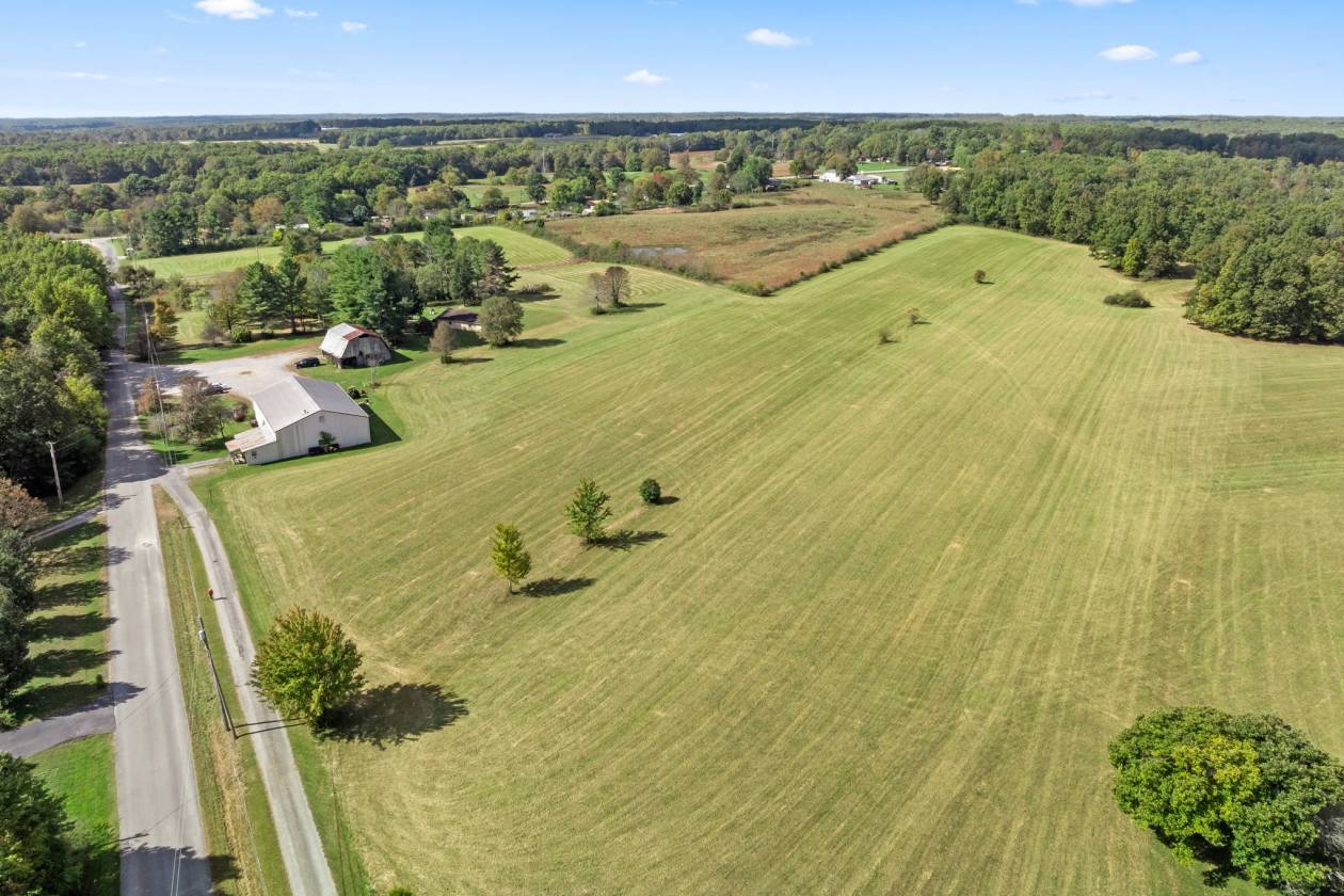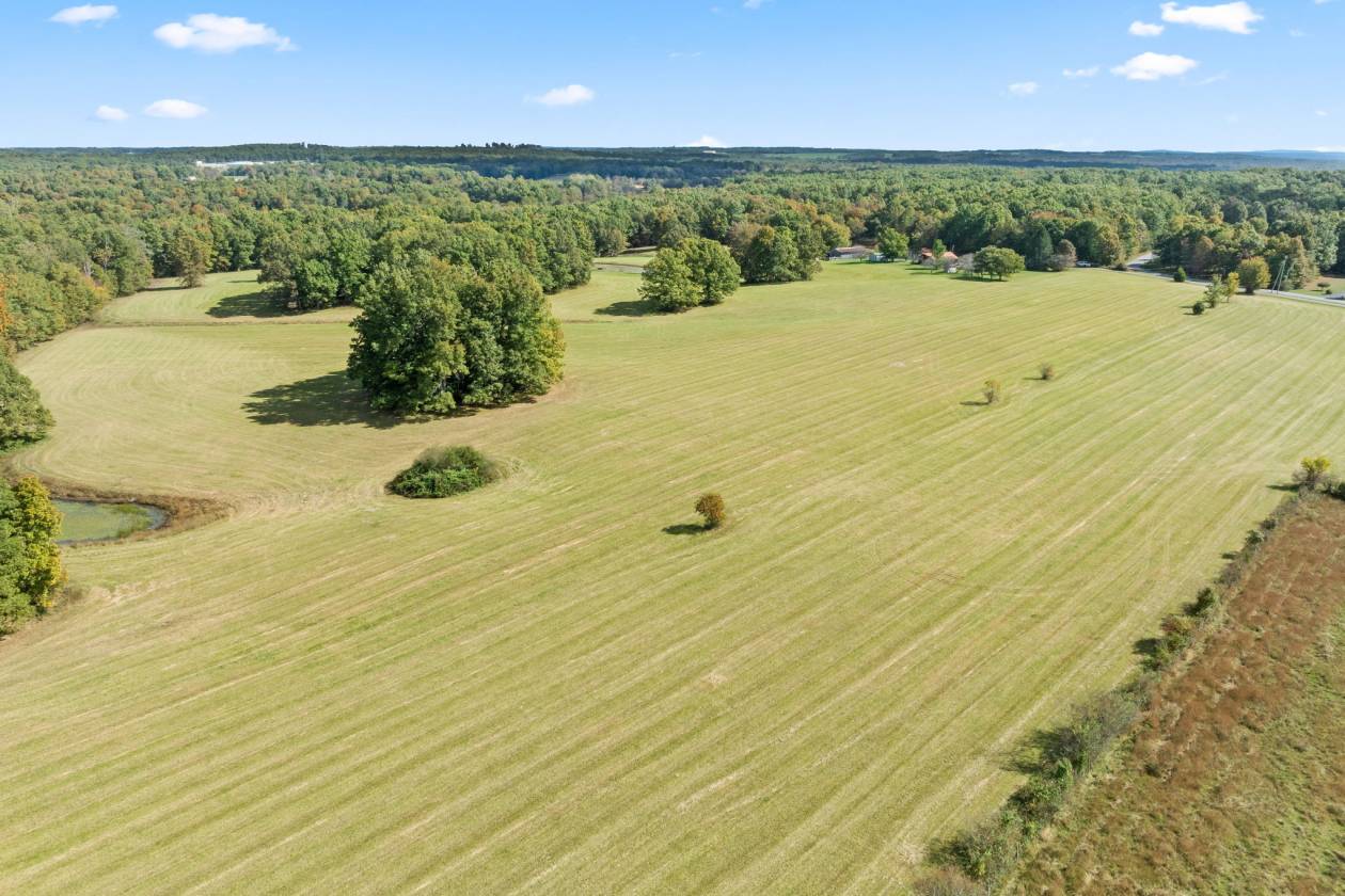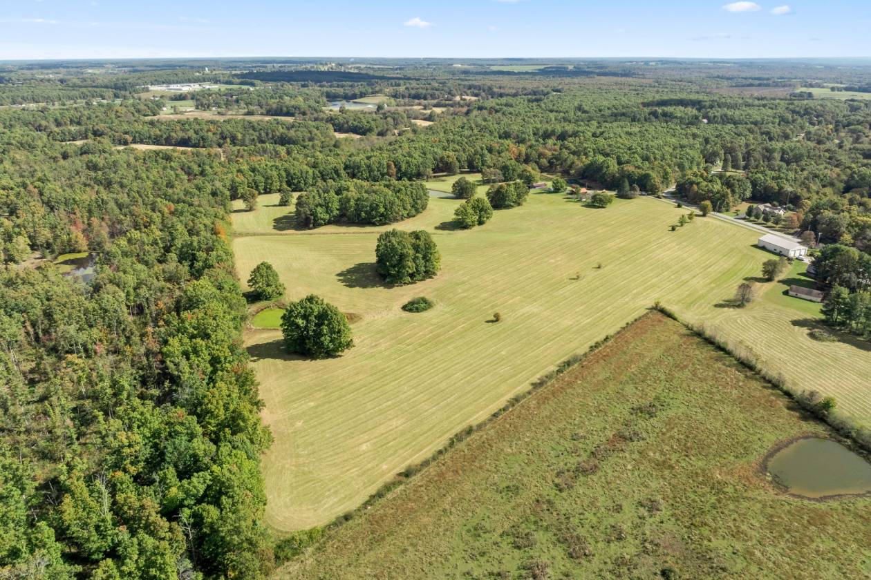 - Rolling fields with crops of hay , very gently rolling to all 5 ponds with several home sites. 3 sides of the property are hardwoods consisting of white oak, black oak, maples and more that buffer the home nicely on 3 sides. 2 other lots are available with the purchase of this farm and bookend the farm. All utilities including fiber optics and natural gas to the home and property.