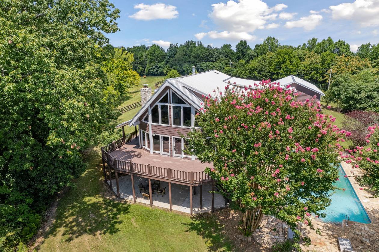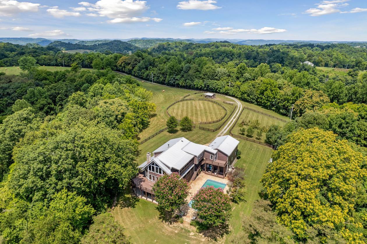 Discover your dream retreat on Dean Acre Lane—an extraordinary 106-acre estate offering breathtaking views, privacy, and direct access to Center Hill Lake. This one-of-a-kind property features a 6-bedroom, 4.5-bathroom custom home filled with character, warmth, and timeless charm. Spacious, light-filled living areas with cozy wood-burning fireplace Wrap-around deck with panoramic mountain and lake views. Primary suite with fireplace and serene vistas. Rich hardwood floors and beautiful pine cabinetry throughout. Built-in kitchen appliances, oversized pantry, and large mud/laundry room. Heated swimming pool perfect for entertaining and relaxing. A barn with an event stage—ideal for gatherings, weddings, or live music. Great opportunity to entertain! Two cozy cabins and a charming old-time church full of character (the church needs some TLC). Plenty of room for exploring, relaxing, gatherings and raising livestock. Fruit trees, wild life, and trails throughout the property that lead to the lake. Lots of room for hunting, a taxidermy room in the barn, lots of room for boat and water equipment storage. There are walk-in closets, tons of storage, a huge, finished basement with a bathroom and additional sleeping area + there was a room used for a recording studio. Whether you're seeking a personal escape, family compound, or income-generating event venue, this property delivers unmatched peace, space, and versatility—just minutes from marinas, restaurants, and the natural beauty of Center Hill Lake. (Please do not enter the property without a licensed Realtor and authorization of listing agent/owner). Survey was previously done.