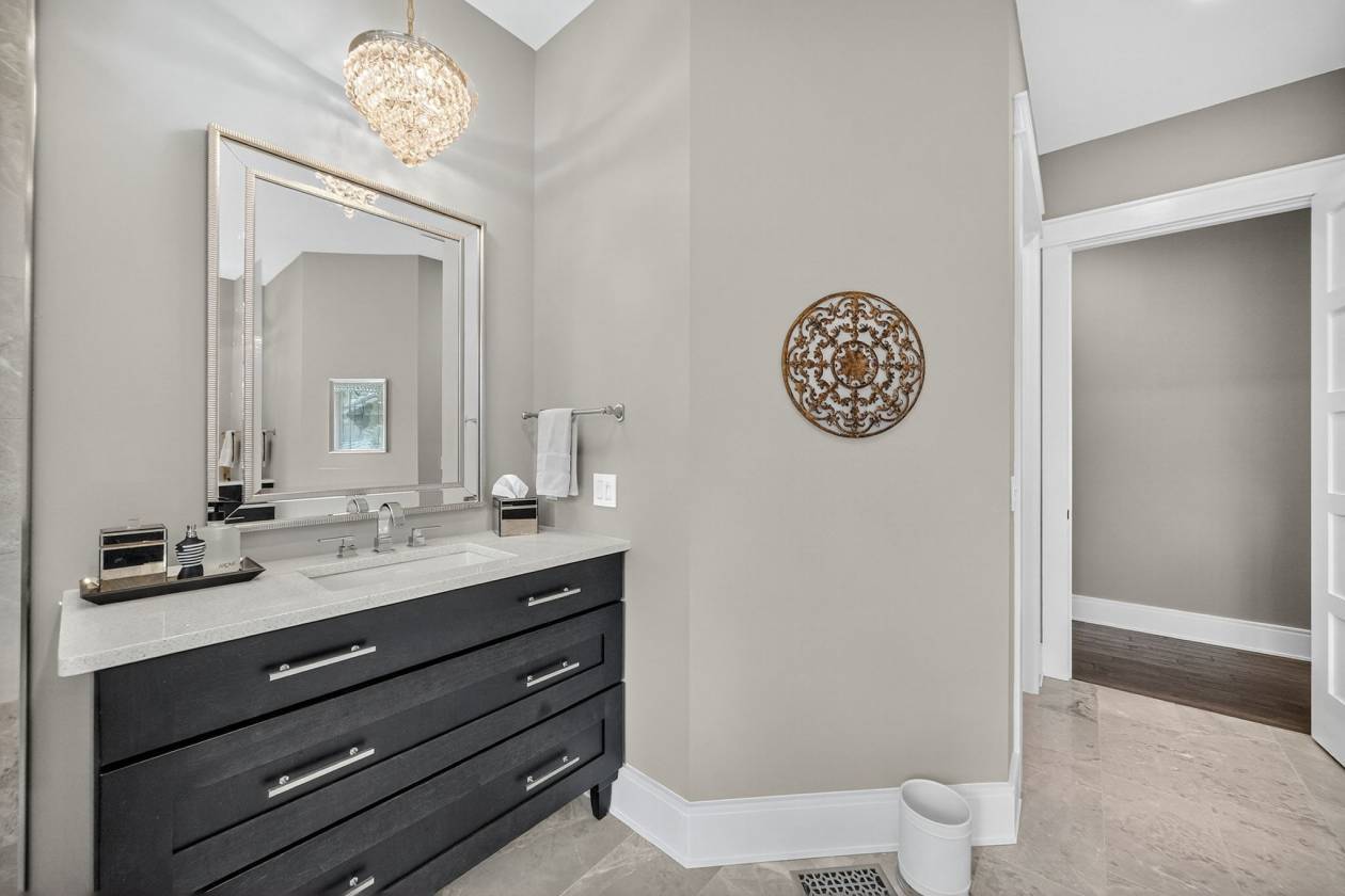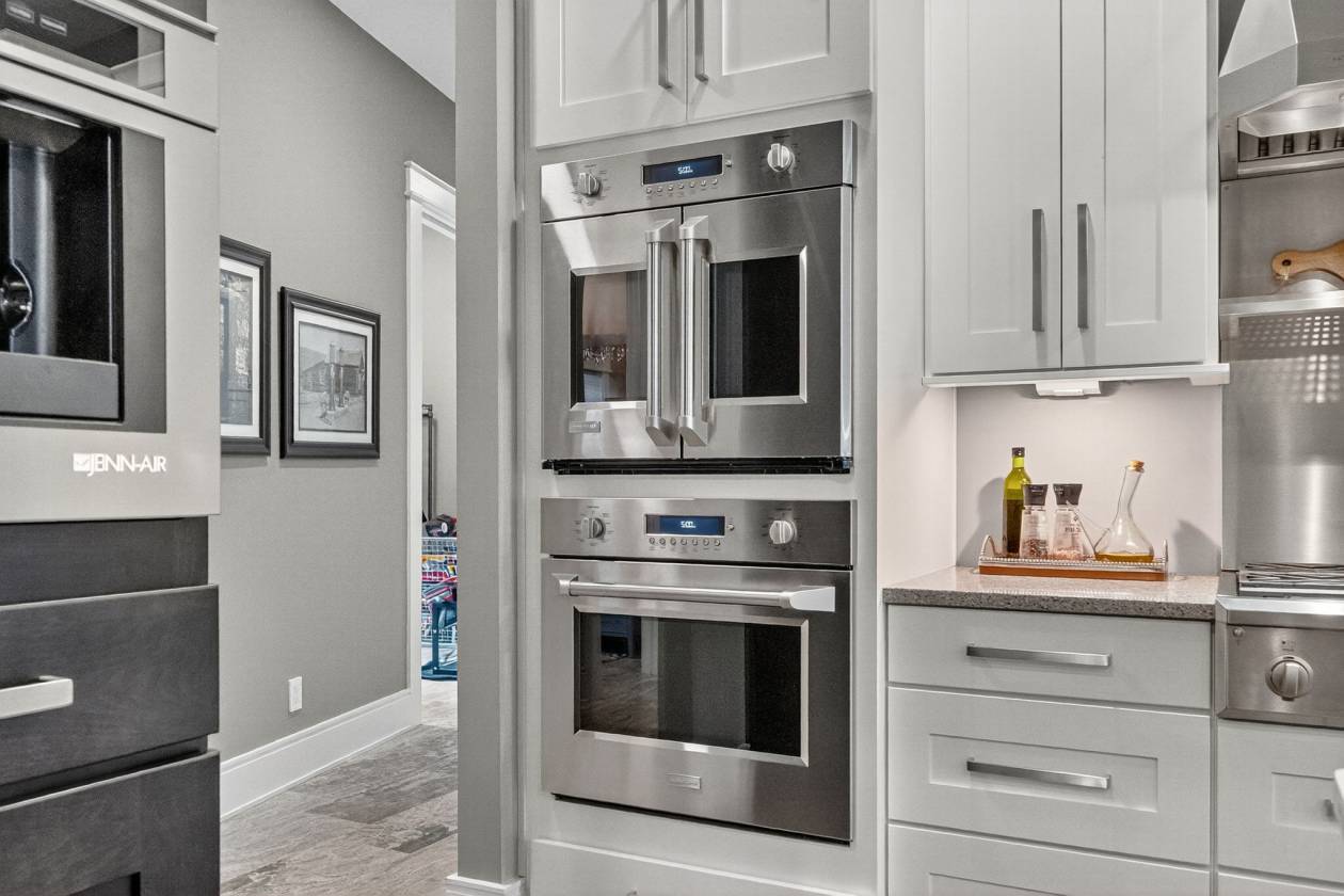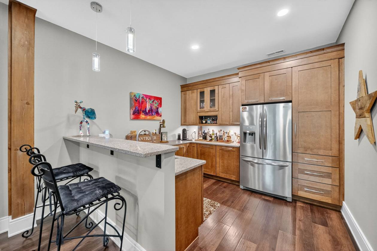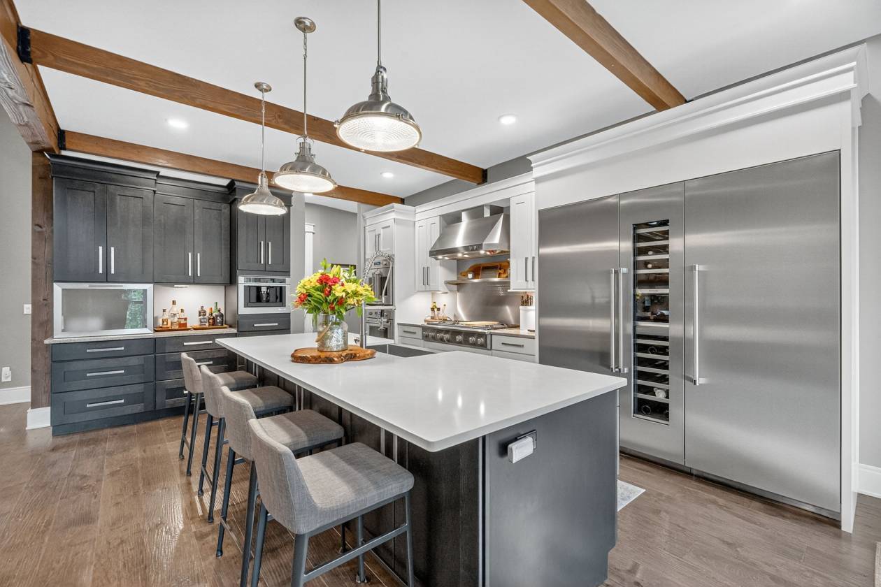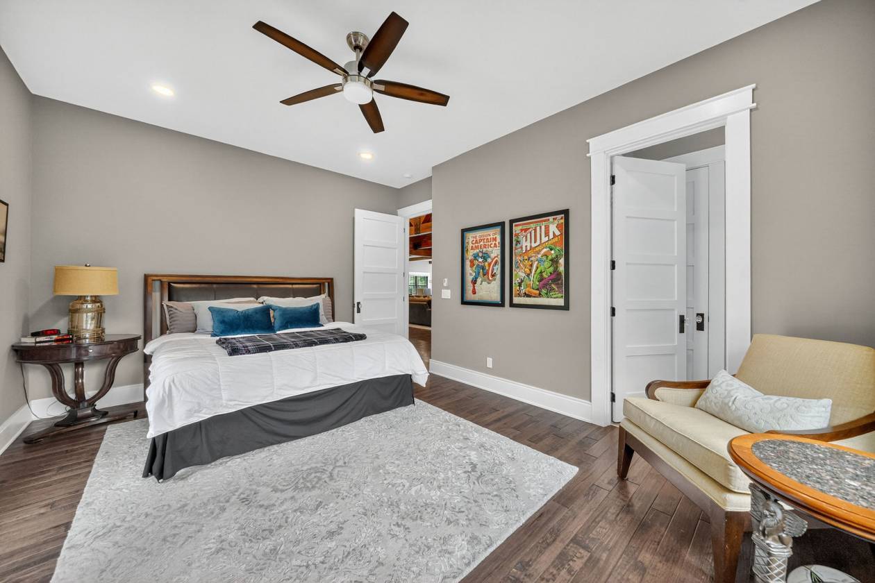 - This 4-bedroom, 4-bath 4 car garage estate spans over 7,088 sq ft of refined craftsmanship, highlighted by 8' solid hand-scraped Amish hardwood flooring, Shaw designer carpet, and travertine stone finishes throughout. As you walk through this grand estate you have a beautiful stone gas fireplace in the great room. The vaulted ceilings create a living experience that's both grand and grounded. Step outside and picture yourself sitting next to another massive stone wood burning fireplace on the back patio.