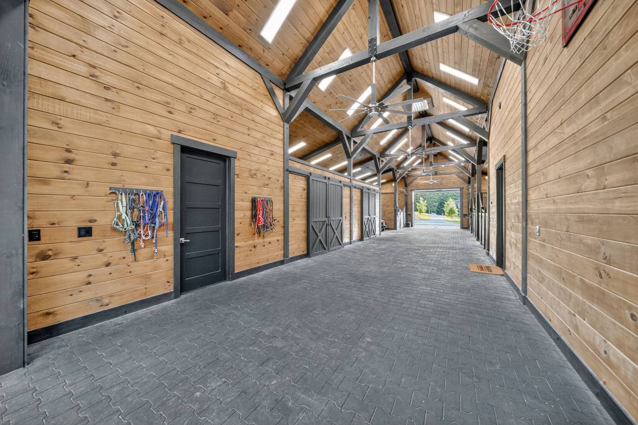 - As you continue to explore the 26 acres you'll find a private equestrian setup complete with a massive barn, workshop/living quarters, fenced pastures, and riding arena. The barn currently has 4 stalls, with the availability for 7. The professional landscaping, fire pit, and private horse trails make outdoor living just as impressive as what's inside This is more than a home, it's a legacy.