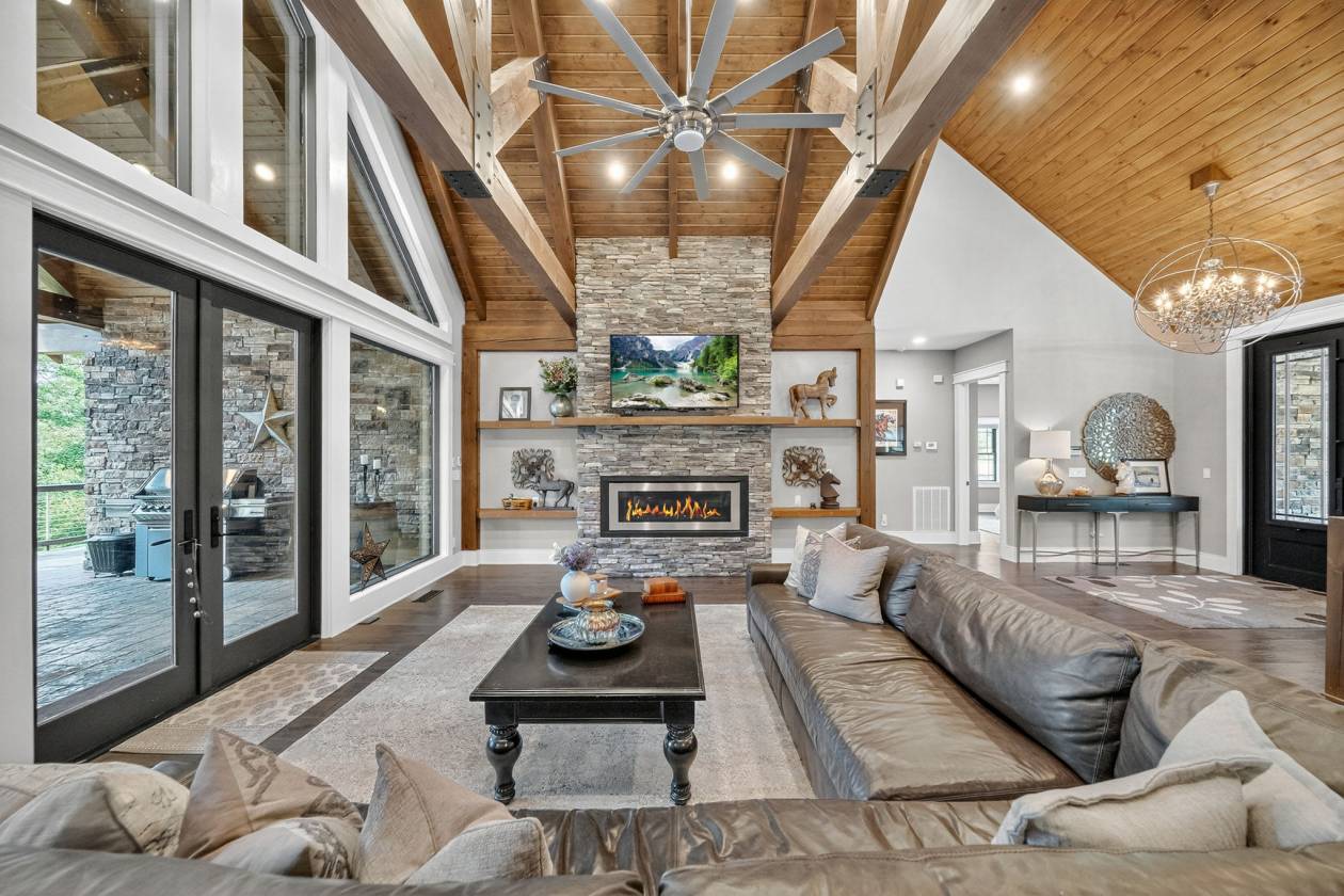 **The Pinnacle of Equestrian Luxury** Welcome to the crown jewel of Rock House Ranches - where world class equestrian living meets timeless mountain luxury. This 4-bedroom, 4-bath estate spans over 7,088 sq ft of refined craftsmanship, highlighted by 8' solid hand-scraped Amish hardwood flooring, Shaw designer carpet, and travertine stone finishes throughout. As you walk through this grand estate you have a beautiful stone gas fireplace in the great room. The vaulted ceilings create a living experience that's both grand and grounded. Step outside and picture yourself sitting next to another massive stone wood burning fireplace on the back patio.