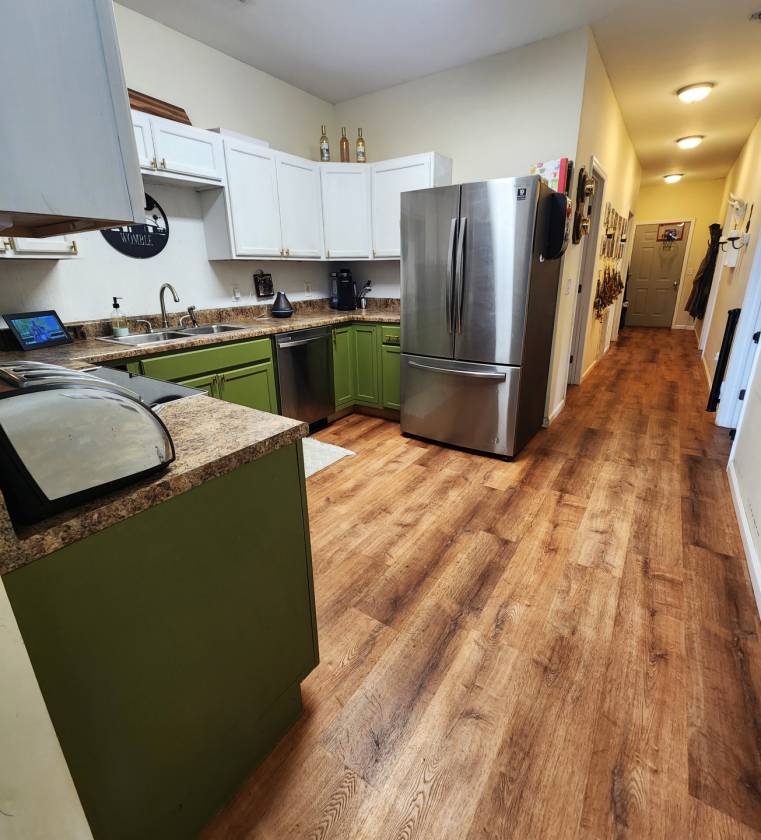 - 2br/2ba barndominium with full kitchen, living room, dining room, laundry room, walk-in closet in master and mud room area.