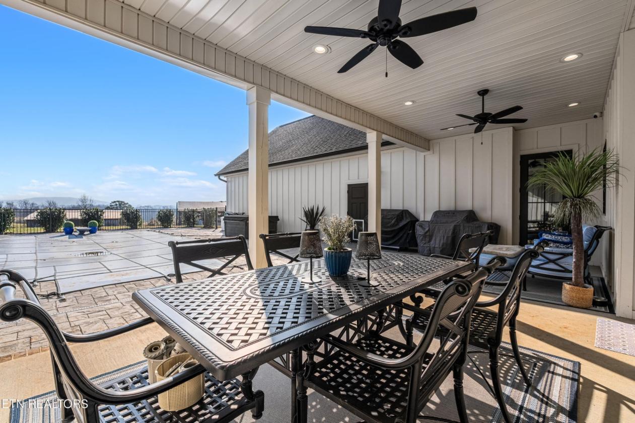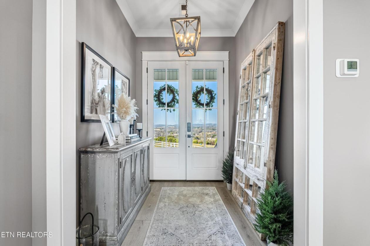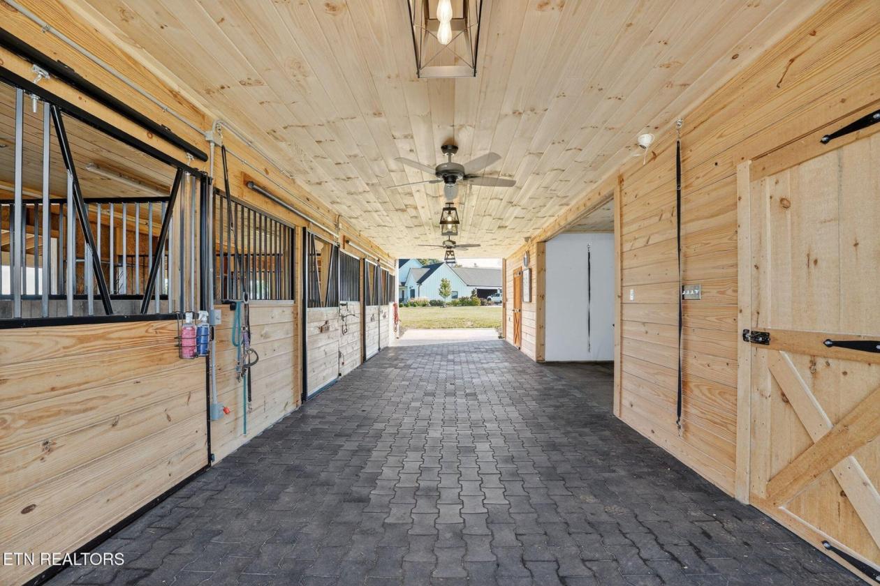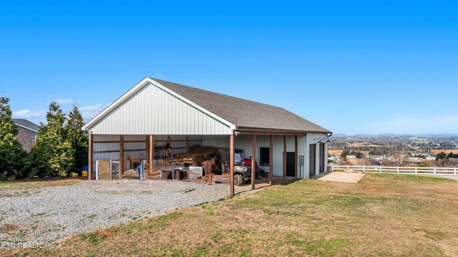 Luxurious Gentleman's Farm! Don't miss this exceptional 12+ acre estate featuring brand-new equestrian facilities with over $350,000 in recent improvements. This stunning property offers breathtaking, unobstructed mountain views and is thoughtfully designed to balance luxury, function, and privacy—all just 15 minutes from the modern amenities of Maryville. The modern farmhouse welcomes you with a large covered front porch overlooking both the mountains and your horses. Inside, the home showcases numerous custom builder upgrades, including 10-foot ceilings, extensive crown molding, and a gourmet kitchen ideal for entertaining. The home is proportionally designed to maximize mountain views from both the front and rear. The main level features 3 bedrooms, 2.5 bathrooms, a breakfast room, study, laundry room, and open living spaces filled with natural light. An upper-level bonus room provides flexible space for a media room, fitness area, or additional living space. The 3-car garage offers ample storage and workspace. Step outside to your private backyard oasis featuring a covered patio and a saltwater, temperature-controlled liner pool, all overlooking the Smoky Mountains—perfect for relaxation or entertaining family and guests. The new equestrian barn and office are truly exceptional. This 36x41, three-stall barn includes 10x12 sliding stall fronts, automatic waterers, rubber-matted stalls with rock and sand bases for optimal horse comfort, and direct access to a rubber-matted 10x41 overhang. The wide center aisle features rubber pavers for safety and includes an on-demand hot water wash bay, feed room, and tack room. The entire upper level is finished as a full office and lounge area. Horse-safe fencing lines the front of the property with vinyl plank fencing and high tensile two of four strands electrified. For additional versatility, the 24x64 workshop/shop includes two oversized garage doors—ideal for boats, campers, equipment, or storage. An attached covered area is perfect for hay, equipment, or potential additional stalls. This is a rare opportunity to own a premier Tennessee estate where you can enjoy horses, livestock, recreation, and true country living—without sacrificing convenience, comfort, or luxury.
