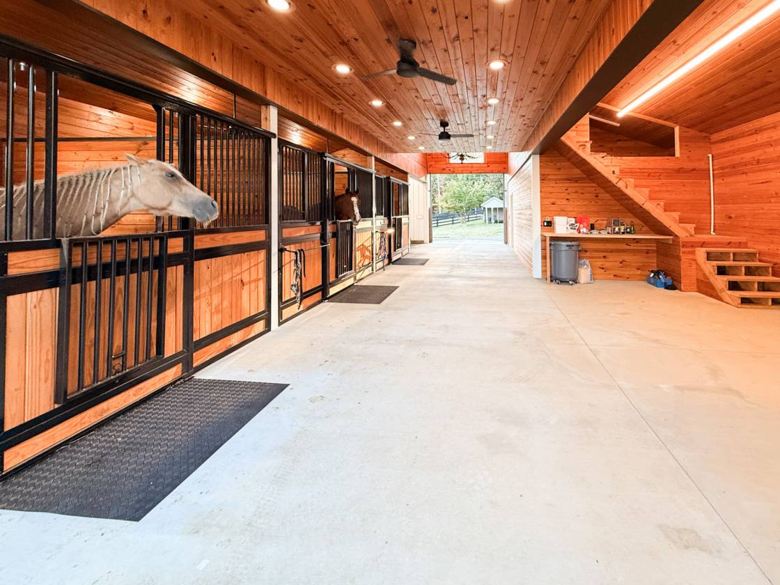 - Large hay loft with access to stalls below for easy feeding