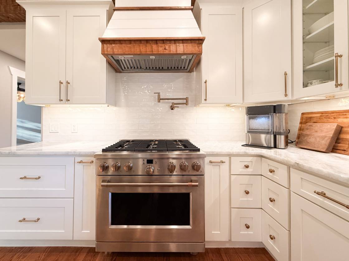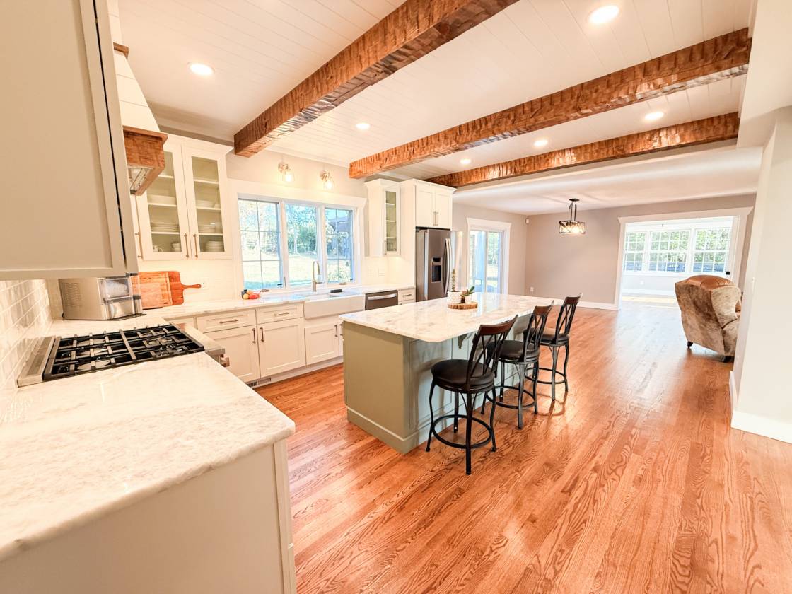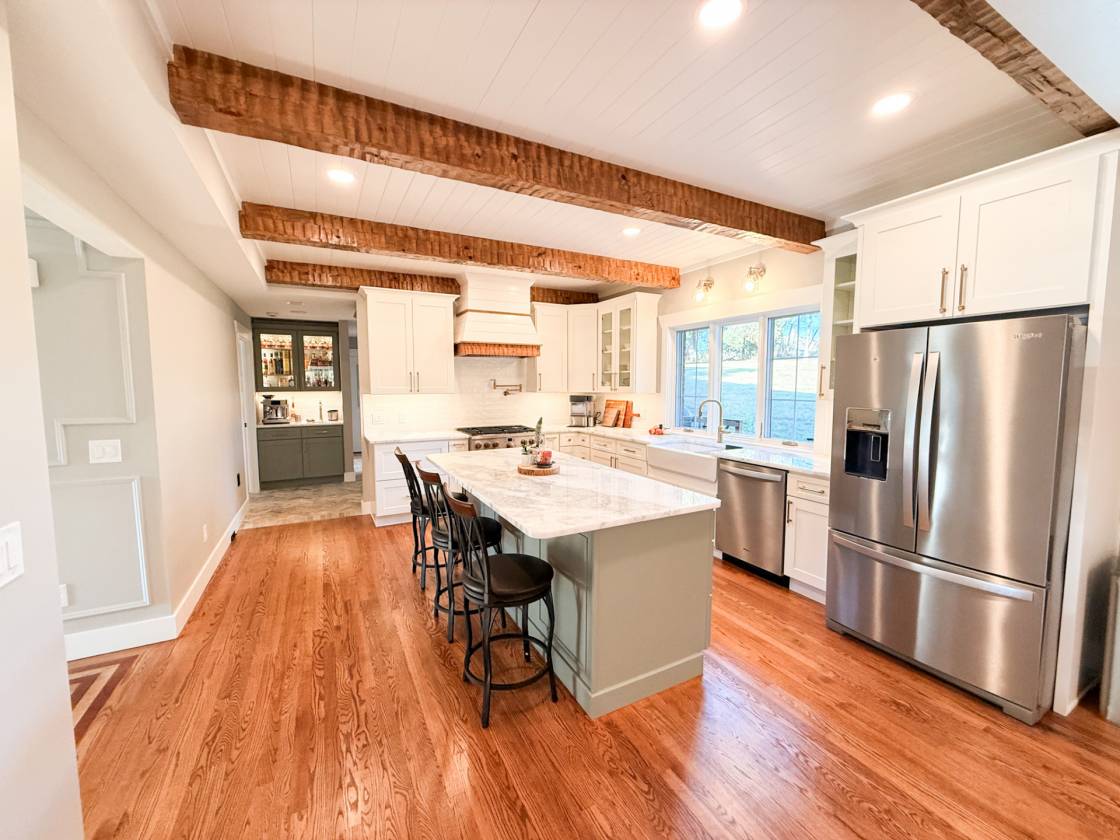 - Beverage/wine cooler, microwave, and hidden trash bin in kitchen island