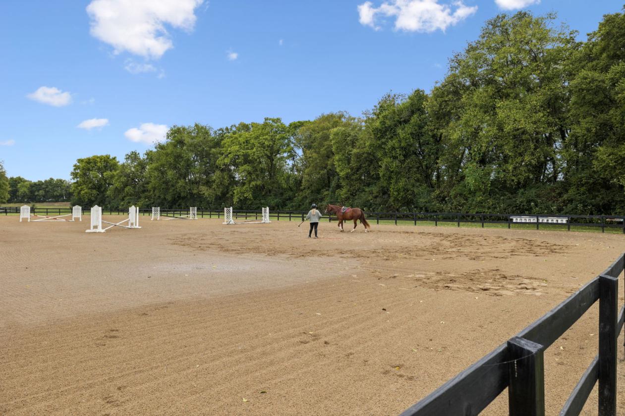 - fully fenced, 1 mile riding loop, multiple arenas including a covered arena with multiple barns and water at each area. Year round Creek on property.