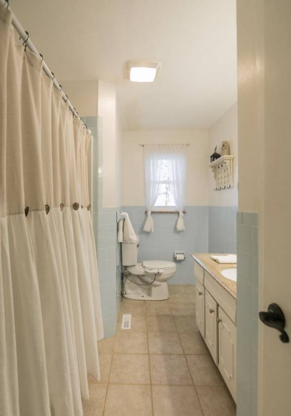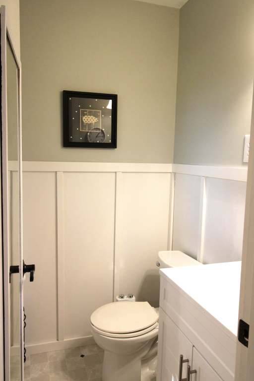 - Farm house interior white trim, new half bath vanity and sink
