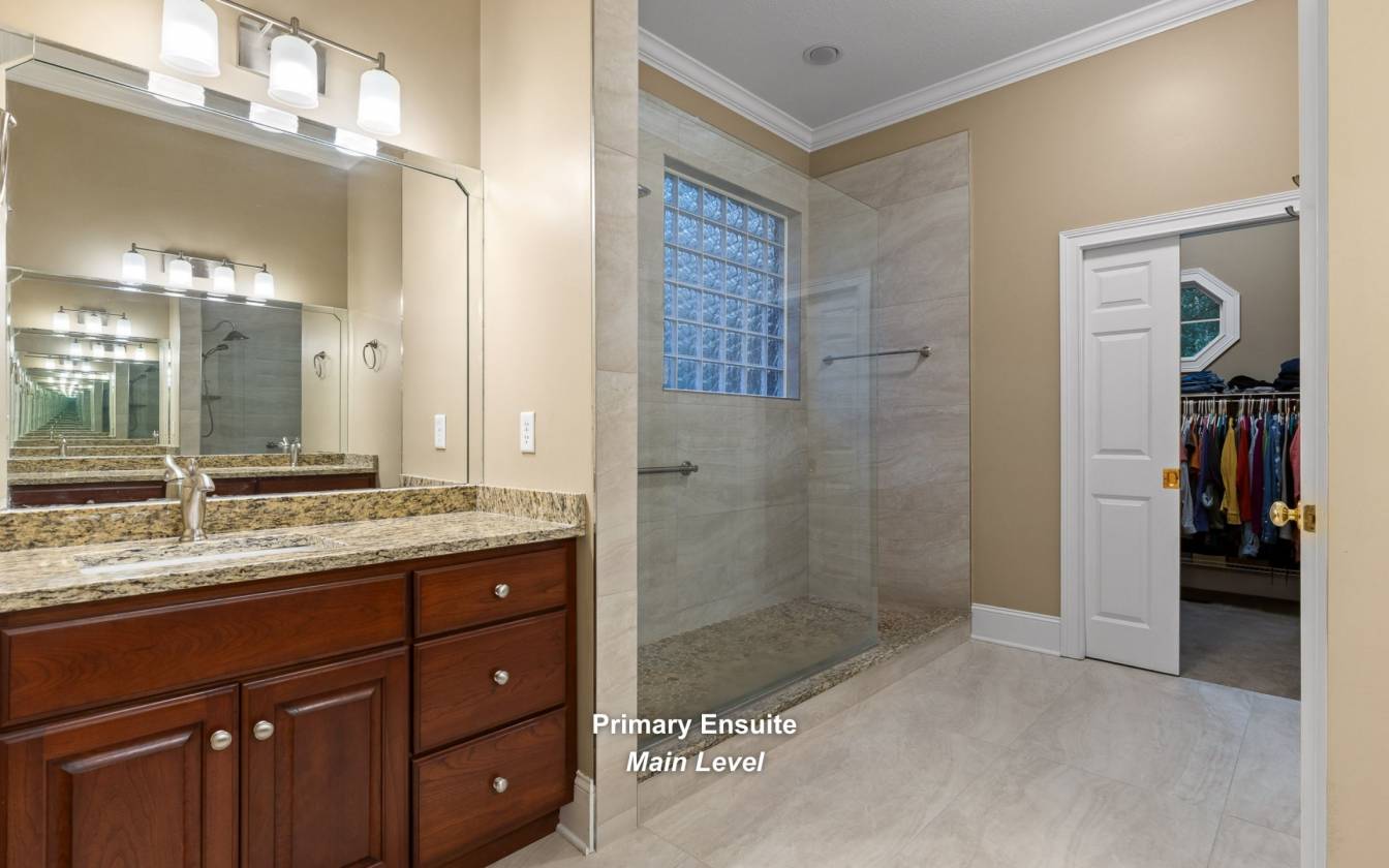- Primary Suite has heated bathroom floors, frameless walk-in shower, 2 walk-in closets