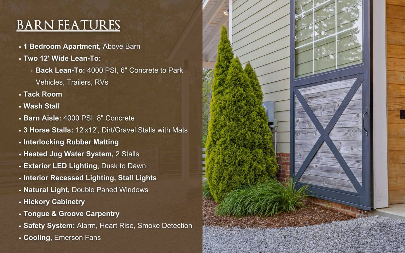 A stunning 10.34-acre estate, seamlessly blending natural beauty with luxurious living. Meticulously maintained home and fenced EQUESTRIAN estate. 37'x38' BARN with 3 stalls, tack room, wash stall, RIDING RING, and fenced pastures. Well-appointed 1,050 sqft. APARTMENT above the BARN is a special bonus for guests. Signal Mountain's GRANDVIEW community offers estate-size lots, wildlife, high speed internet, and a mountaintop location. Enjoy easy access to miles of riding trails adjacent to community. In the main residence, you're greeted by an open floor plan highlighted by 10-foot ceilings, expansive transom windows, and French doors that reveal a tree-canopied view from the screened porch. MAIN LEVEL LIVING with features like solid oak hardwood flooring, formal dining room, HOME OFFICE, cozy family room, primary bedroom, and 2 spacious guest rooms. The gourmet kitchen offers custom cherry cabinets, granite countertops, gas cooktop, large island, walk-in pantry, and butler's pantry. Adjacent laundry room is fully equipped with granite countertops, extensive cabinetry, a large stainless sink, and a refrigerator. The primary suite is a retreat with heated bathroom floors, dual vanities, frameless walk-in shower, and large walk-in closet. 2 generous guest bedrooms feature walk-in closets, while a versatile bonus room offers additional space.Home is protected from power outages by a FULL HOUSE generator. As you move outside, enjoy Signal Mountain fresh air, view of horse pastures, and the soothing sound of rushing water on the 54'x16' screened porch. This one of a kind property is framed by Clear Brooks Dr to the east, Brimer Creek to the south, Alder Branch to the west, and a private drive to the north. If you are looking for a pristine, equestrian-friendly environment, this carefully-designed estate is for you! 15 minutes to Signal Mountain town center, with local favorites like Pruett's Market, The Bread Basket, Pumpkin Patch Playground, and Signal Mountain Golf and Country Club. Signal Mountain is home to rich history and endless outdoor adventure at nearby Rainbow Lake, Signal Point, Mabbitt Springs Trailhead, Falling Water Falls Natural State Area, North Chickamauga Creek Gorge State Park, and Prentice Cooper State Forest. Only 23 minutes to Dunlap, and 30 minutes to Downtown Chattanooga. (Items to remain: Refrigerators, extra mini split unit, barn lights, extra set of dawn-to-dusk barn lights, 500 gallon owned propane tank, 500 gallon propane tank is leased from Holston Gas for $70/year. Buyer to verify square footage. Some images may be virtually staged. Buyer is responsible to do their due diligence to verify that all information is correct, accurate and for obtaining any and all restrictions for the property deemed important to Buyer.)