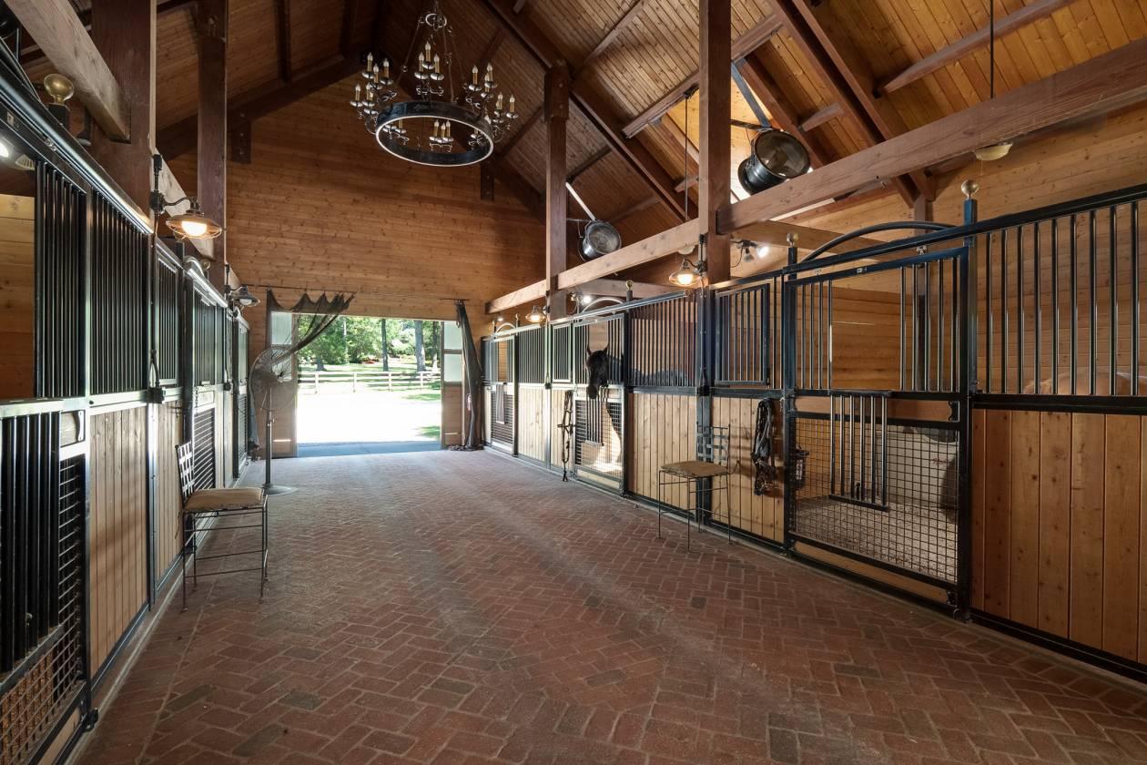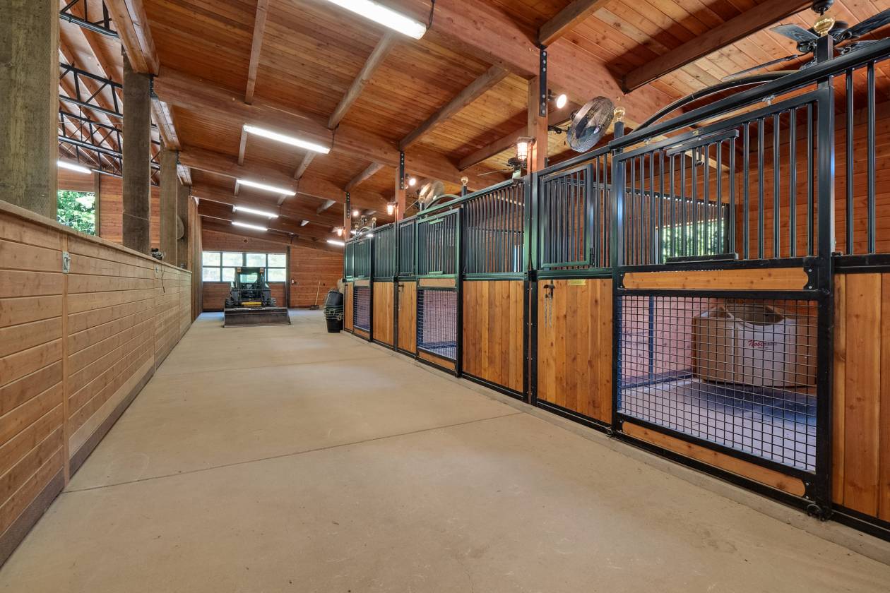 - 6 stalls plus storage & tack room, hot/cold water, fly spray system, and observation deck