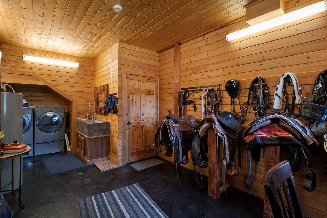 - Wash rack with hot/cold water, break room with bathroom/shower, tack room with sink and laundry