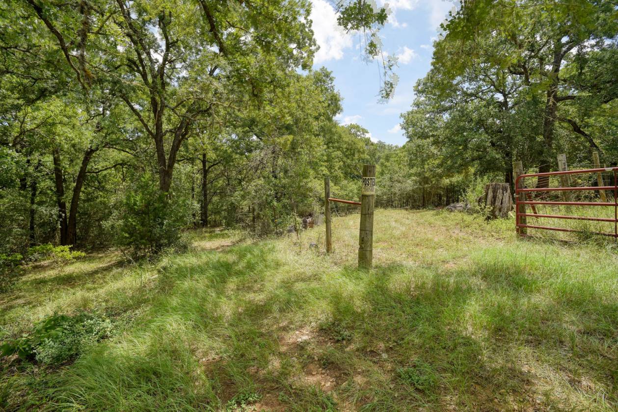 - 5 acres on a cul-de-sac only 1 mile to Bucees. Beautiful oak trees and gentle sloping land with cross fencing and a pond (currently very low).