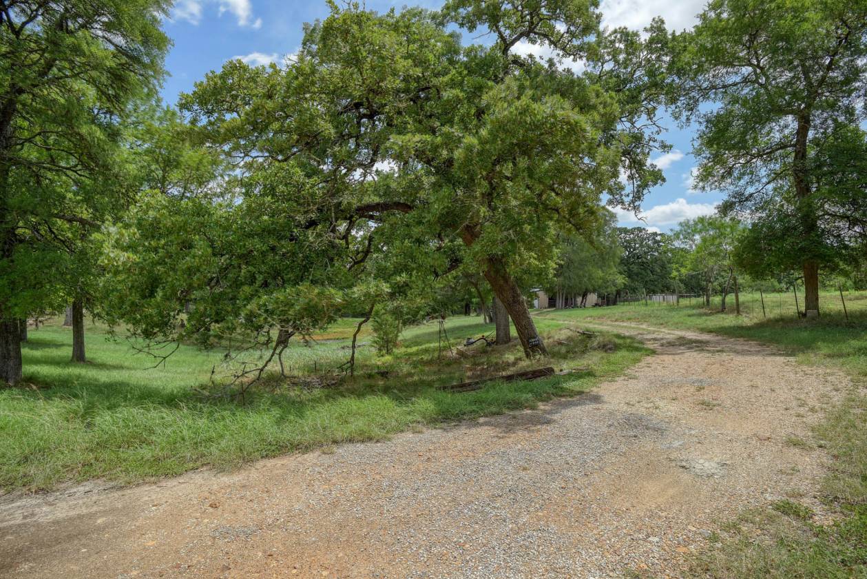 - 5 acres on a cul-de-sac only 1 mile to Bucees. Beautiful oak trees and gentle sloping land with cross fencing and a pond (currently very low).