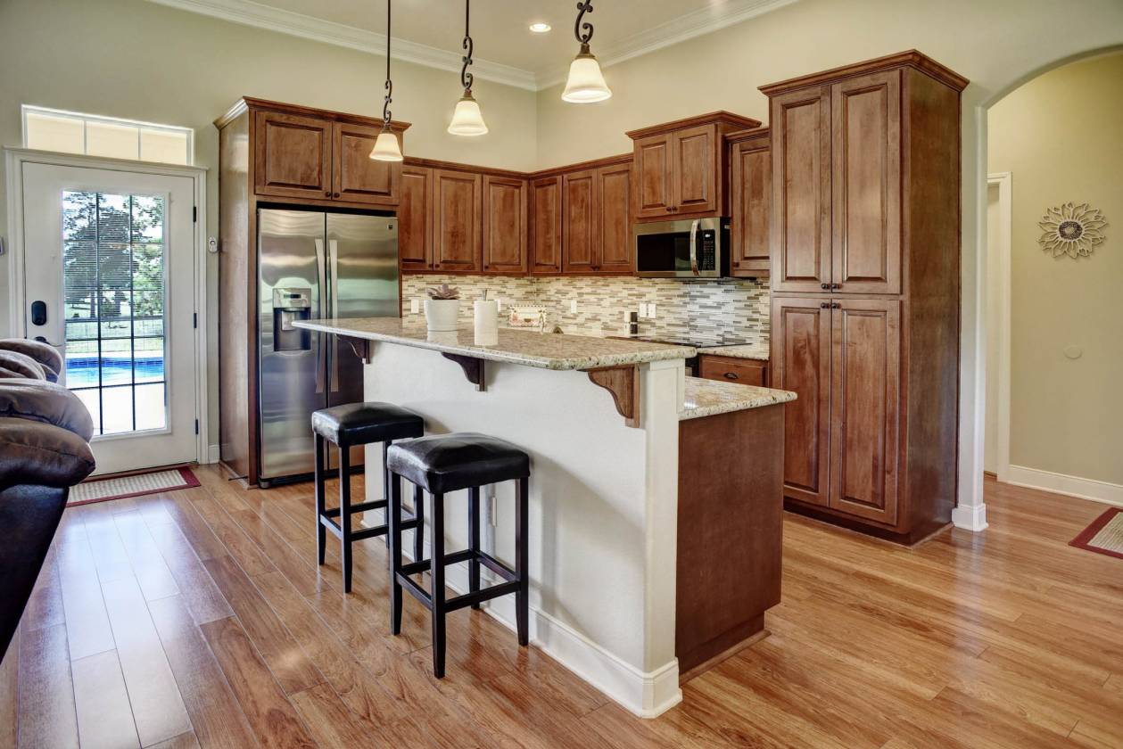 - Custom wood cabinets