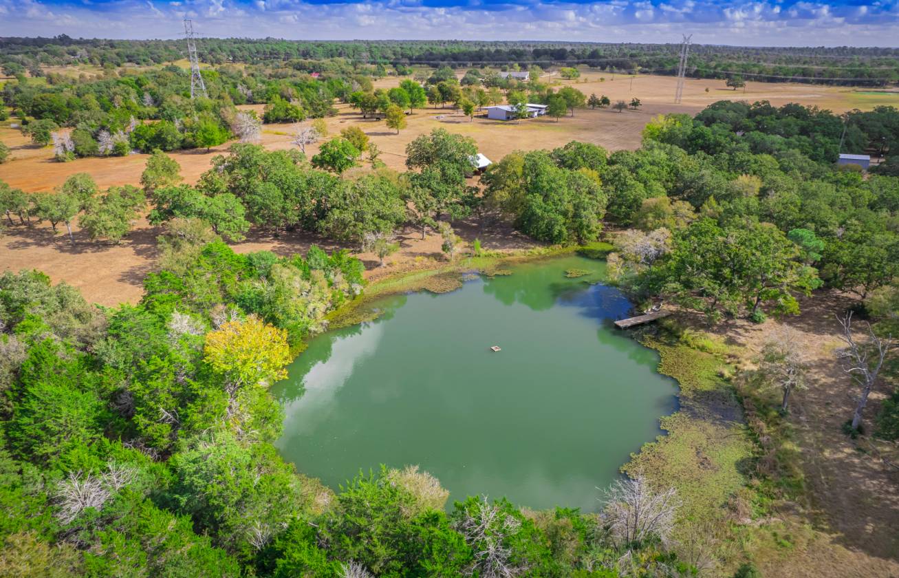Tranquility and beauty await you on this beautiful 40 acre property. The exceptional 2-story ranch style home is surrounded by majestic oak trees and boasts a welcoming wraparound porch in the front and back of the home for sitting outside on those peaceful evenings. Features two beautiful ponds for outdoor enjoyment. Nicely located between Buescher and Bastrop State Parks. 30 X 50 Shop with electricity, water and fully insulated. RV Cover with full hook up. Additionally, there is a horse barn and tack room. Fully fenced and cross fenced. Updated kitchen with granite countertops, spacious cabinetry and a large island for entertaining. The living room is spacious with vaulted ceilings and windows that offer a stunning view of the outdoors. Breathtaking views continue from the primary bedroom located on the main floor. En-suite bathroom, spacious jacuzzi tub and a separate walk-in shower