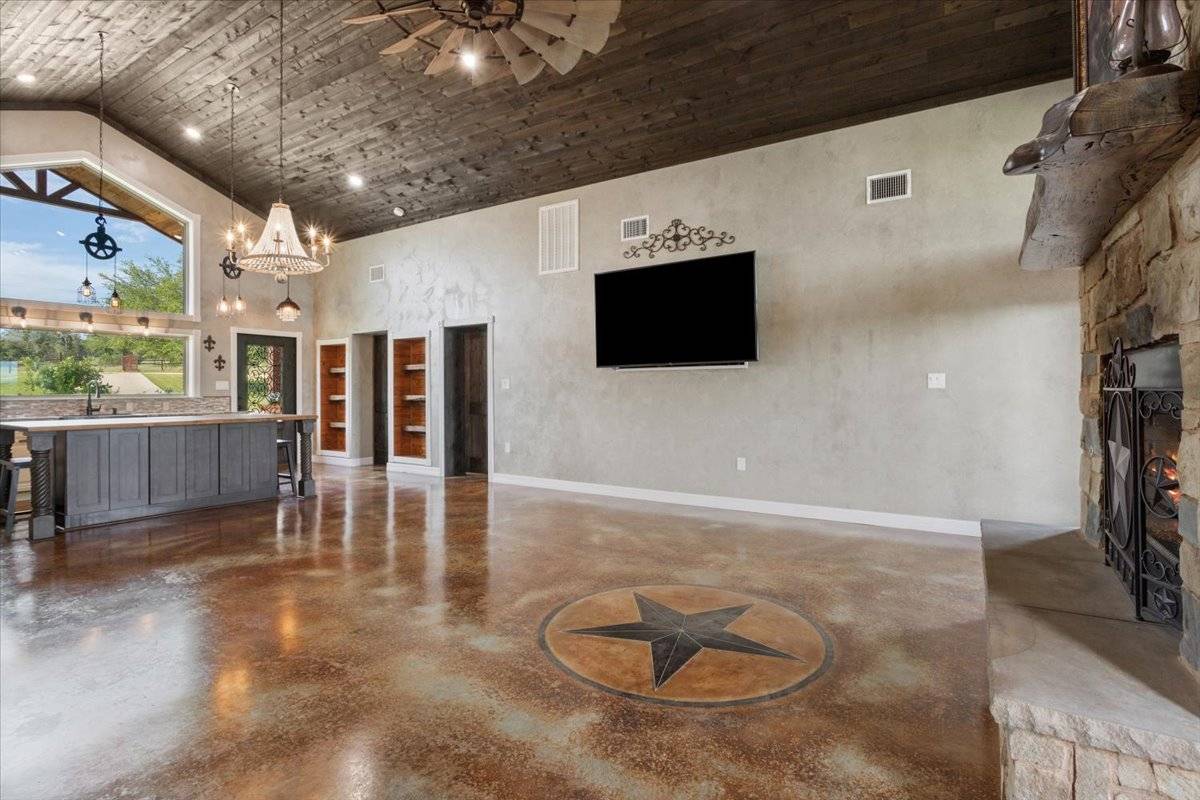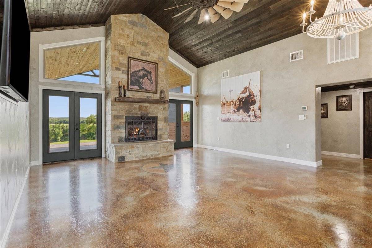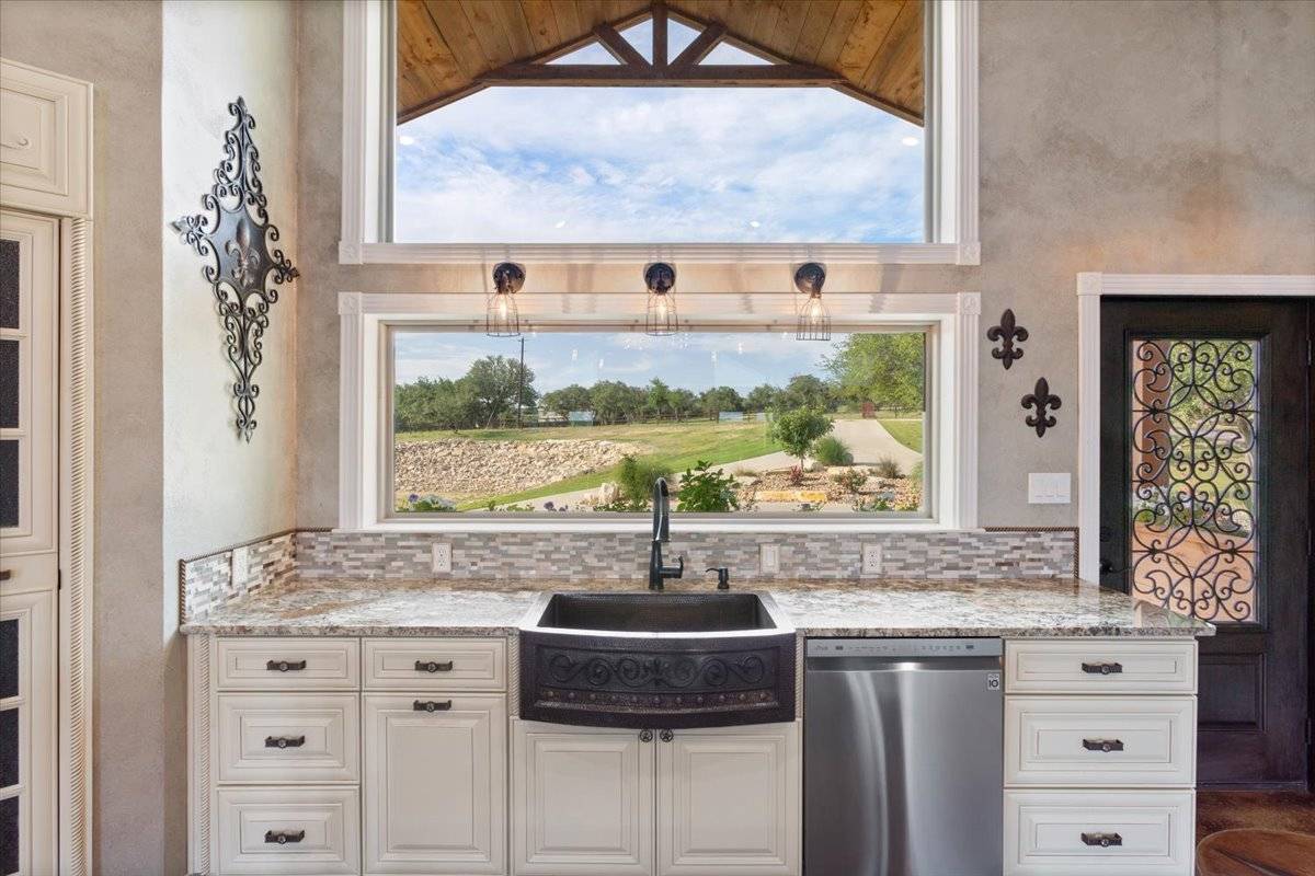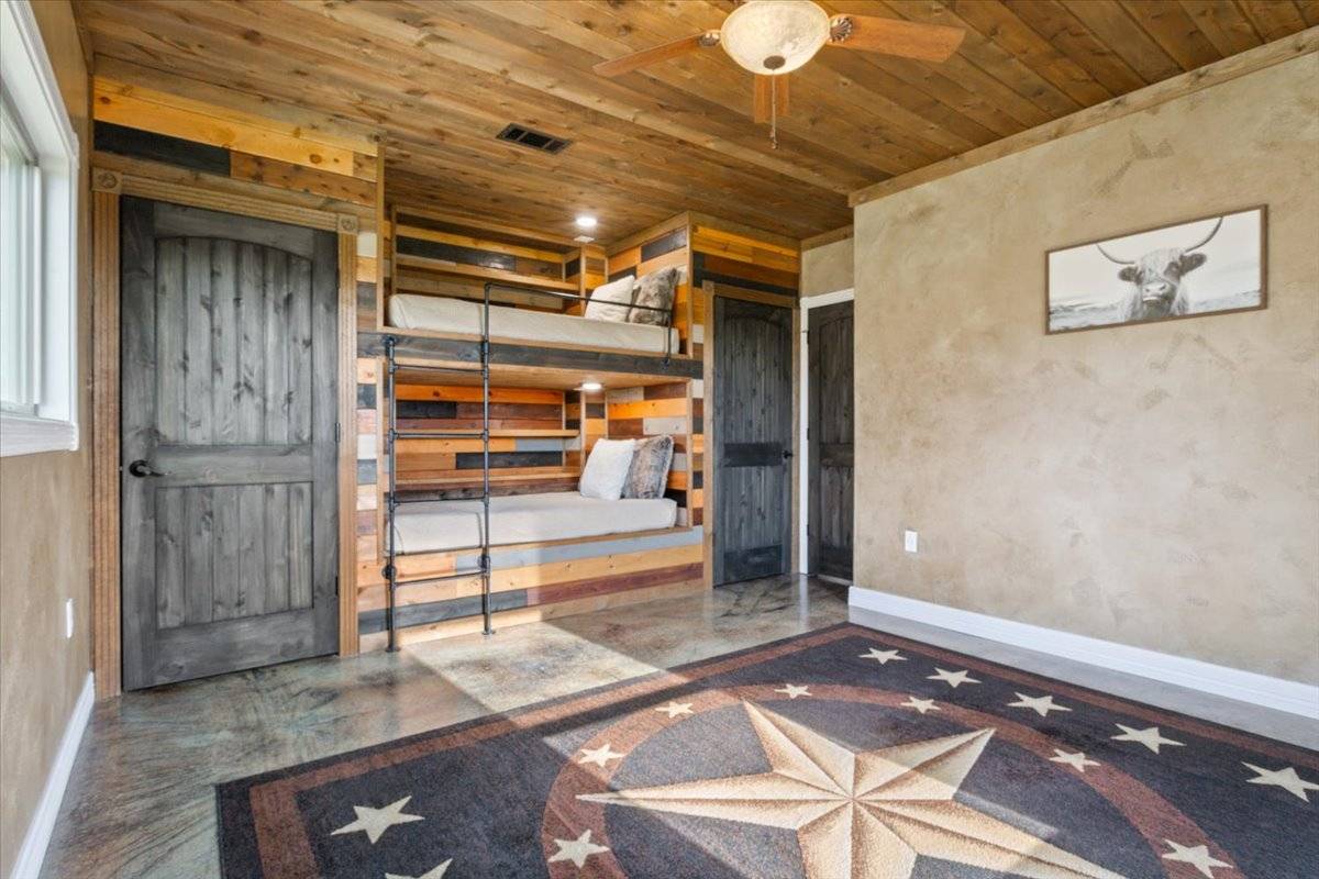 Gracious Riverfront Horse Property on the Lampasas River in Central Texas...17+ acres with 520 feet of beach like river frontage in the rural community of Ding Dong. Currently under wildlife management assessment within Bell County, which offers nature at its best and lower property taxes. Perimeter of property is fenced with 8 ft game fencing, and interior is cross fenced with split rail and automatic gates. Water is supplied by private well w/2 holding tanks. The grounds around the home are serviced by automatic irrigation system. Horse barn has 2 stalls, nice concrete alley, separate concrete shower stall, tack room, and studio apartment with washer dryer connections. Covered parking for tractors trailers, etc... loafing shed nearby. RV hookups by barn. 1800 square ft workshop with 3 rollup doors plus walkthrough has spacious concrete apron for easy maneuvering of trucks, trailers and provides extra parking for guests as well.