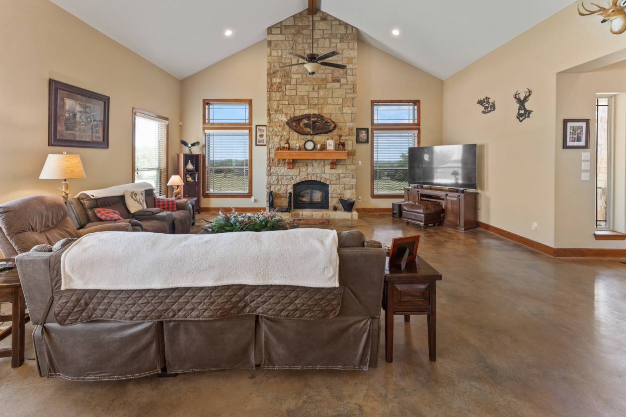 This beautiful 3-bedroom, 2.5-bathroom home is situated on nearly 12 acres of land, offering plenty of space for privacy and outdoor activities. The property includes a barn and livestock fencing, making it ideal for horses, donkeys, or other agricultural needs. Inside the home you'll find an open floor plan with a spacious living room, dining area, and kitchen — perfect for entertaining. The primary bedroom is conveniently located on the main floor, featuring a cozy fireplace, a large en-suite bathroom, and a walk-in closet. Upstairs, you'll discover two additional bedrooms and a versatile living room/flex space that can be tailored to your needs. Enjoy relaxing evenings on the expansive, screened-in back porch, ideal for watching sunsets. The property also includes a 2-car workshop and a detached 2-car garage. Additional features include two wells that service the house, yard, and barn, plus an RV hookup for added convenience. Whether you're looking for a peaceful retreat or a functional space for your lifestyle, this home offers it all.