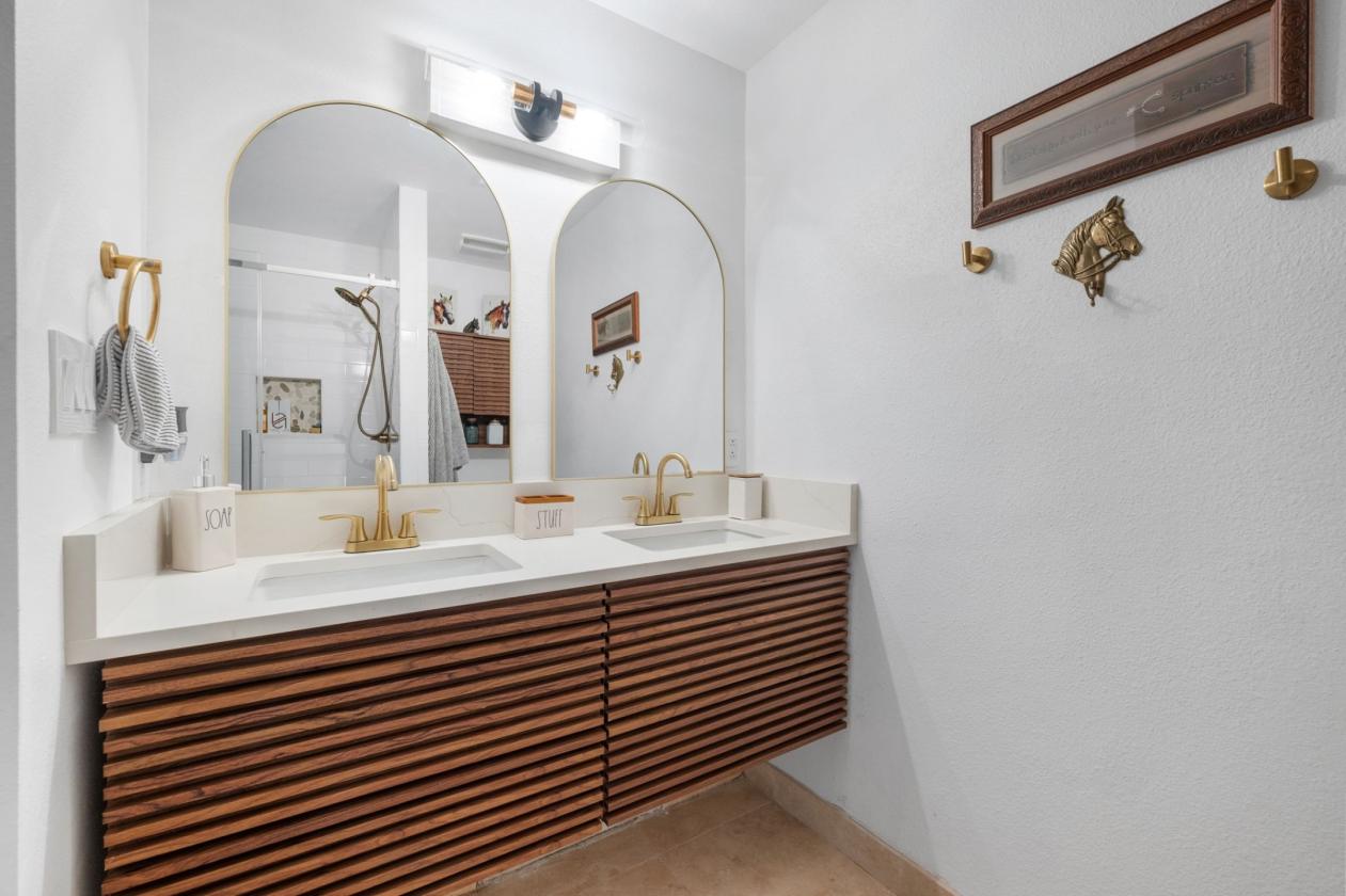 - Modern Hardware w/ Brushed Gold Accents