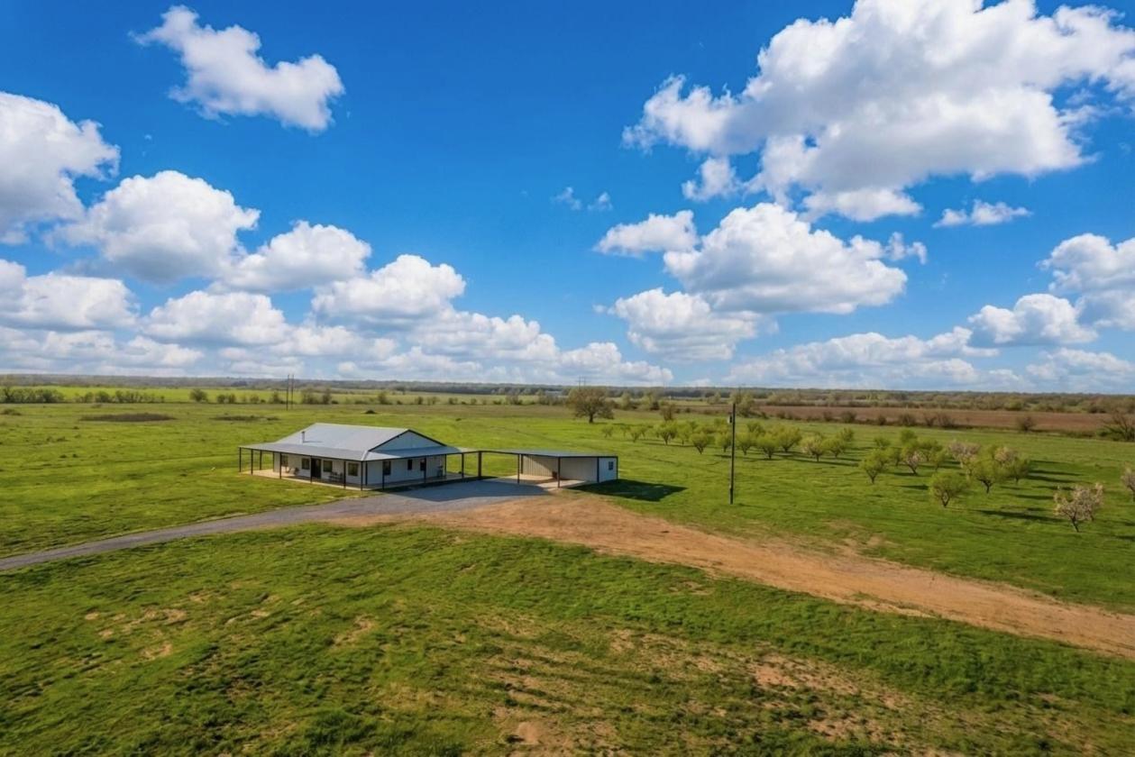 100.7 acres ***No Restrictions ***Minutes from town ***Modern Farmhouse ***Peach & Pecan Orchards ***Spring Fed Creek- Approx. 3,500 FT of Salt Creek Frontage & Tank/Pond- Approx. 1 Acre in size ***1,977 FT of Highway 183 frontage with Commercial Possibilities***Hayfield ***Wildlife ***Hundreds Year Old Trees ***Barn/Workshop- 1500 SF, Insulated + Elec, Pull-Thru***Second Homesite + Utilities ***Guest House/Apartment Shell In Carport- Approx. 500 SF, Incomplete Build ***Residence: Wrap-Around Porches- 2,400 SF of covered porches ***Open Floor Plan ***Stunning Views ***Vaulted Wood Ceilings ***Giant Island+Seating for 8 ***Custom Cabinets ***Farmhouse Sink ***Double Ovens w/ Air Fry ***Walk-In Pantry ***Large Primary Suite: Luxury wet-room style bathroom ***Cast iron pedestal tub inside walk-in shower ***Dual Sinks/Vanities ***Pull-out sprayer faucets in bathrooms ***Huge Walk-In Closet with Custom Built-Ins ***Potential Uses: Homestead, Vacation Home, Hunting/Fishing Ranch, Equestrian/Horse, Farm/Orchard/Vineyard, Cattle, Off Roading, Event/Wedding Venue, Multi-Generational Estate, Commercial