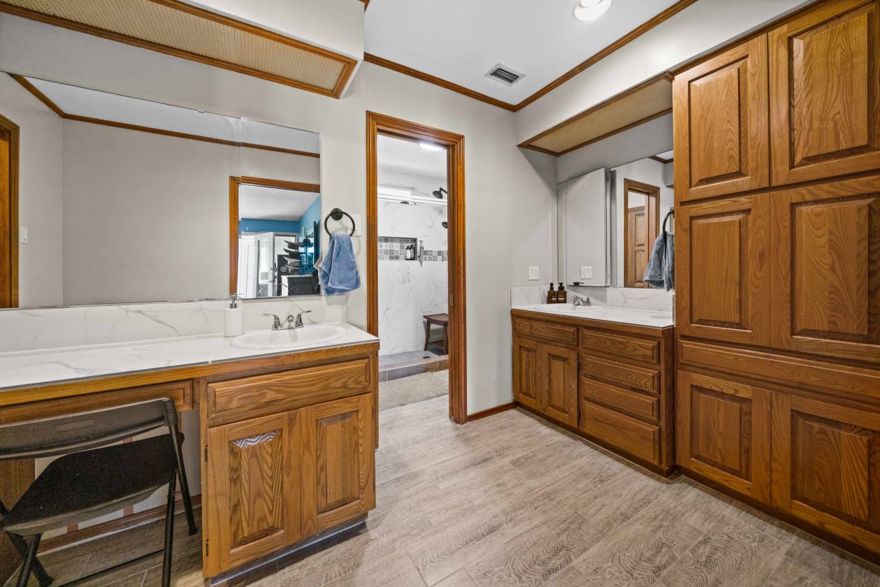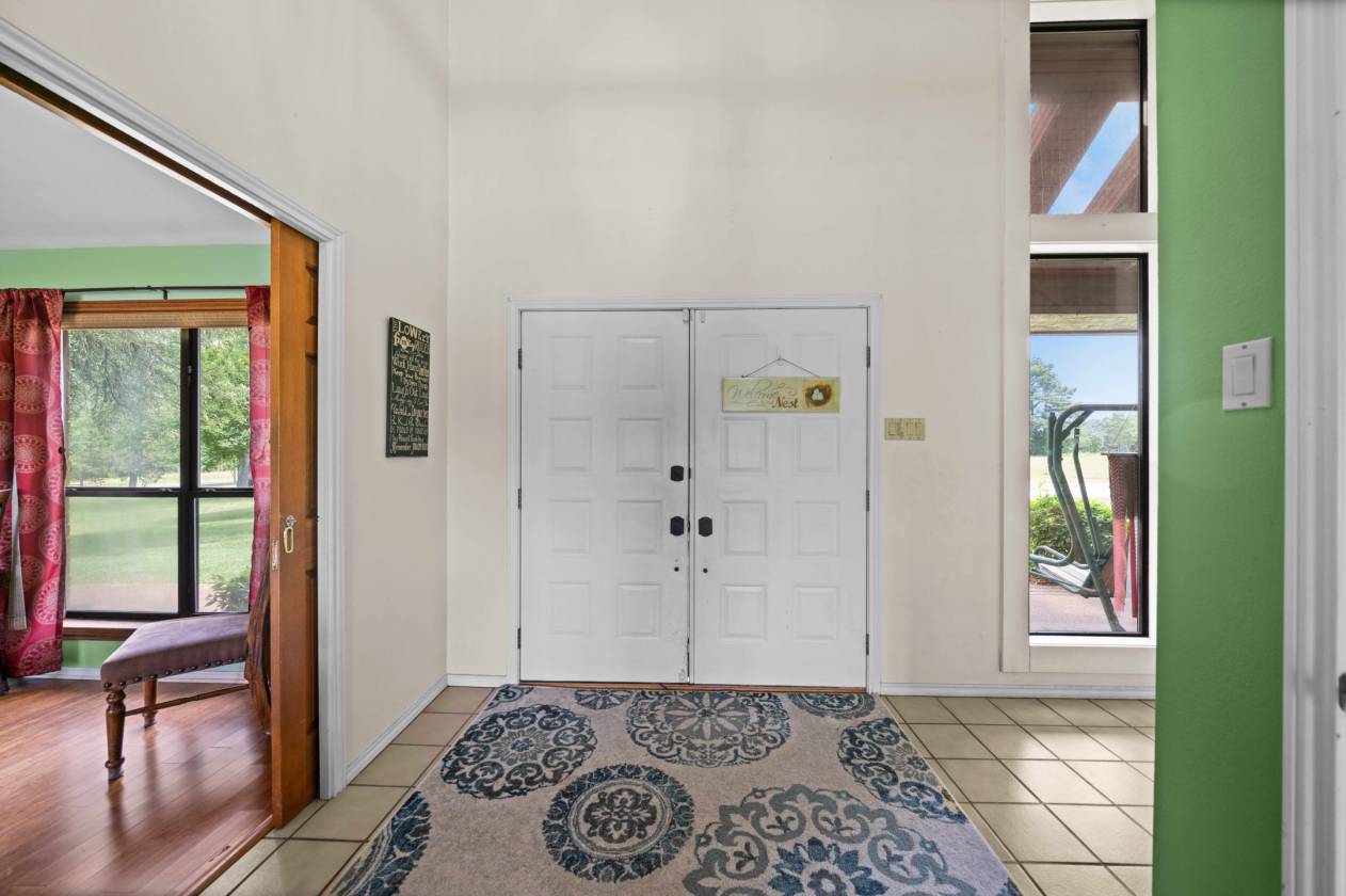Discover the charm and versatility of this remarkable 22 acre, two-story residence located in the serene countryside; just minutes from shopping, schools, and medical plazas in Jacksonville, TX. Elevated on a corner lot, this property offers breathtaking views of your very own stocked pond and lush surrounding landscape. This family home offers 6 bedrooms and 3.5 baths, and stands out with its multiple living spaces and a thoughtfully designed split floorplan; ideal for those who cherish both privacy and shared living areas. As you step inside, you'll be greeted by a flood of natural light streaming through large entryway windows, enhancing the comfortable and airy ambiance of the home. The primary suite is located on the main floor, with five additional rooms and two full bathrooms upstairs. The generously sized three-car garage is perfect for both vehicles and extra storage needs, and includes a separate storage closet, the entire length of the garage! Behind the home is a new pole barn and shop space for all your farm equipment. Stepping out through the primary suite, double doors open onto a sunroom that could also be used as a home office. Exit the back of the house onto a large backyard patio, offering a tranquil retreat with water-front views of your large pond and sprawling 22 acres!! Perfect for entertaining or simply enjoying the expansive views of your property; a canvas for your future plans or potential developments. The pond has never dried up and has a pump which runs to multiple sprinkler heads, keeping your property green all year. Contact your agent today to schedule a private showing and witness firsthand the potential that awaits in this Jacksonville family oasis!