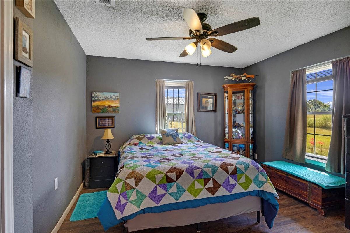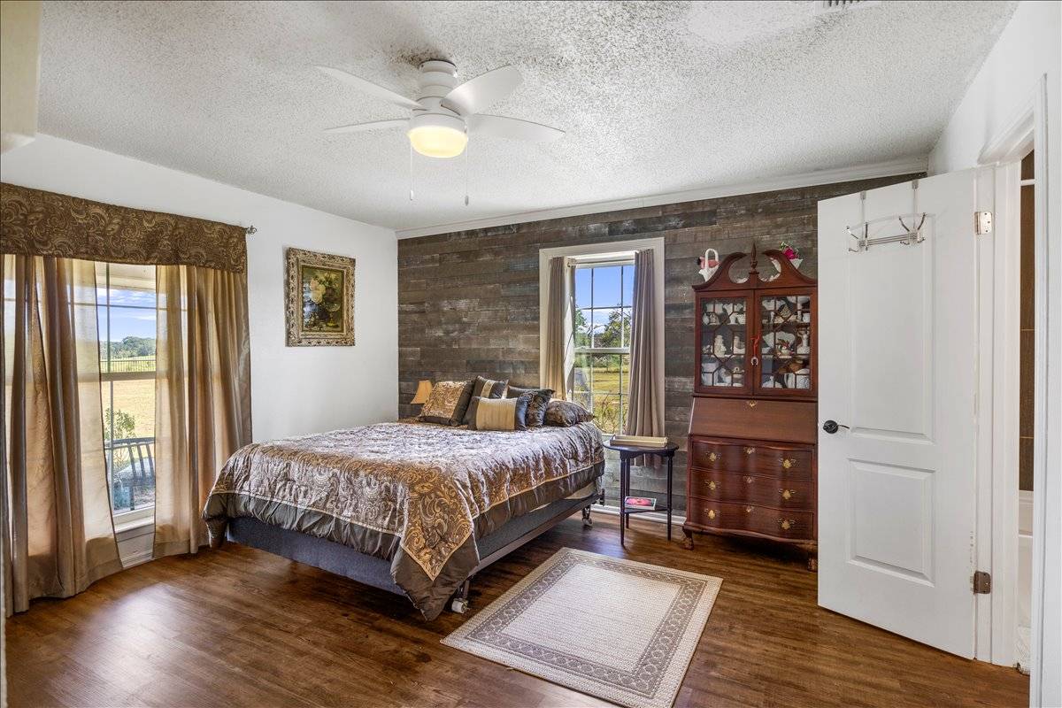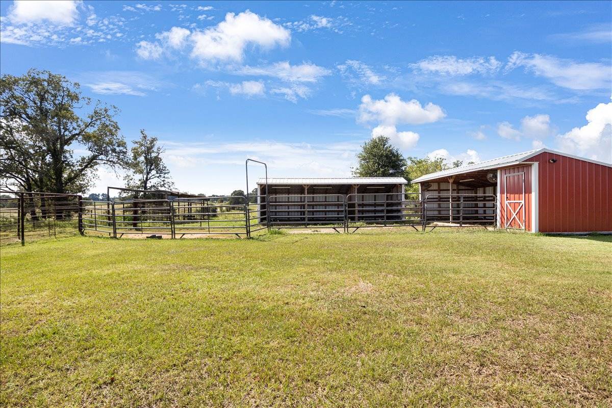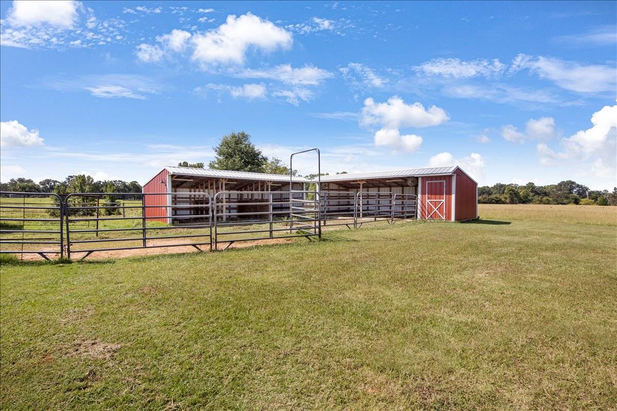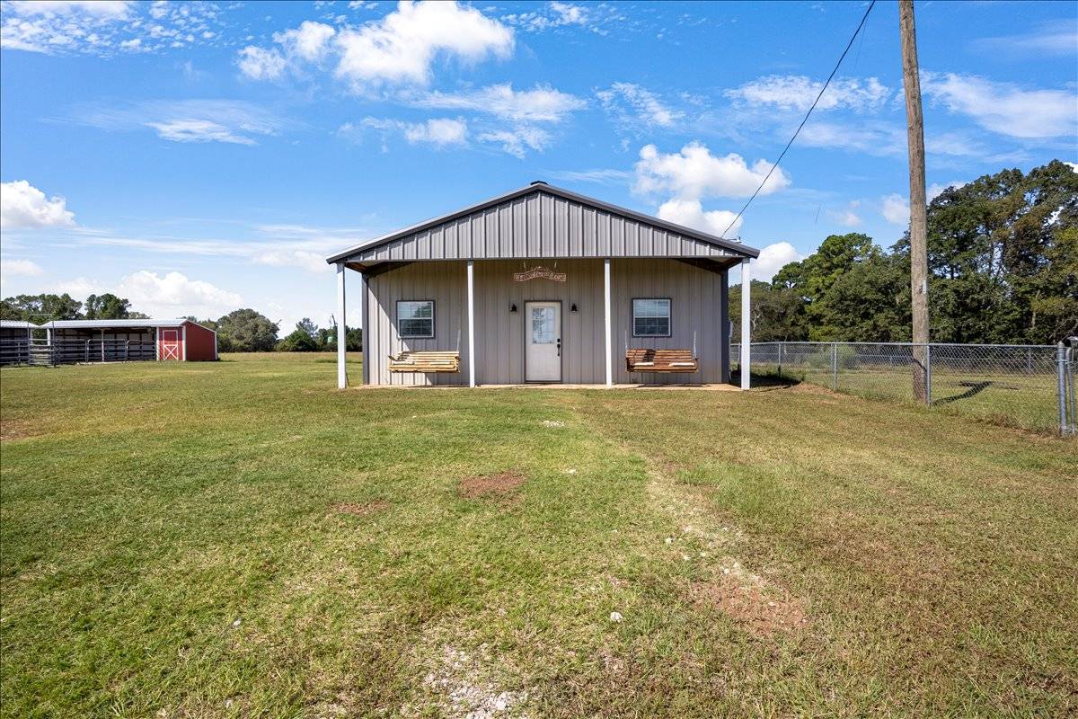 - Property is fully fenced and cross-fenced with coastal hay pastures, barn with stalls, tack shed, and holding pen—ideal for horses or cattle. Rolling terrain offers mature trees, open fields, and a scenic pond for livestock or recreation. A versatile shop includes partial heat and cooling plus a bathroom, perfect for projects or storage. Ample acreage provides room for livestock operations, outdoor recreation, or future expansion. An excellent equestrian-ready property in a peaceful country setting tractor and RTV are negotiable .