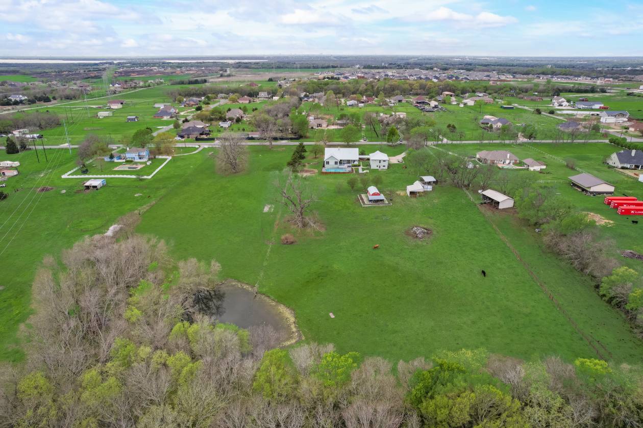 NEW LANDSCAPING. METAL ROOF. UPDATED POOL - HUGE DECK. UNDERGROUND STORM CELLAR. NO HOA. IN THE COUNTY OF COLLIN COUNTY. RV Connection. THIS AG EXEMPTED PROPERTY OFFERS SO MANY POSSIBLITIES FOR AN OWNER. Bring your parents or your kids to live on the Estate. Or rent it out, if you'd like. Or better yet, run your own business out of here. Live the true TEXAS lifestyle here. You could even build another house. It's gated and fenced for the cows. Stocked pond with bass & catfish. Producing pecan trees. Large, concreted dog kennel. Hay barn with tack room. 2nd building can be a WORKSHOP or BREEDING HOME or STORAGE it has water and electricity. Space for a raised garden. Large chicken pen. HUGE deck area for above ground pool, surrounded by land scaping and new fence wall.