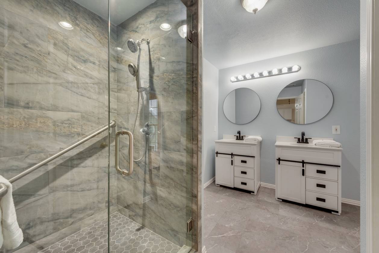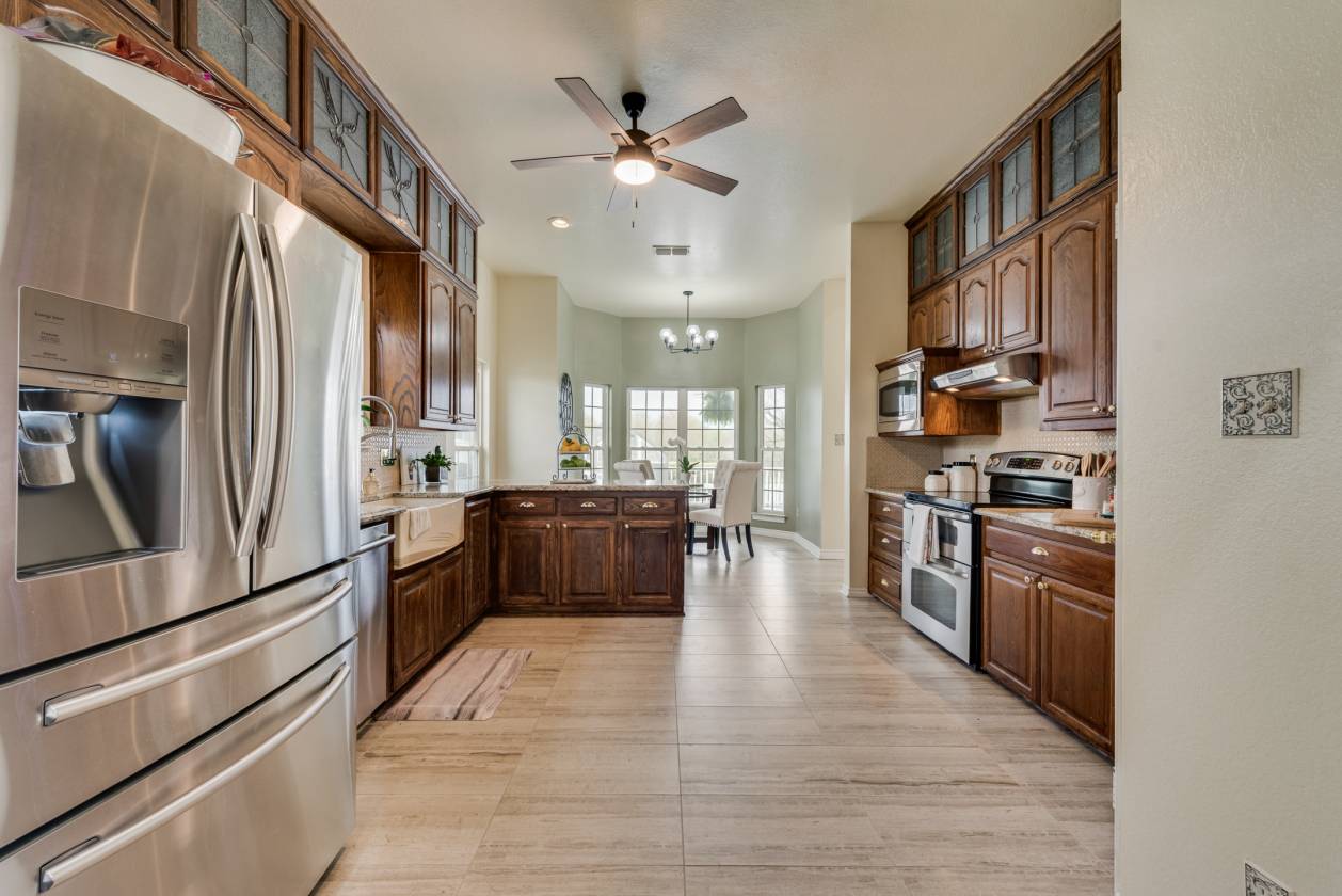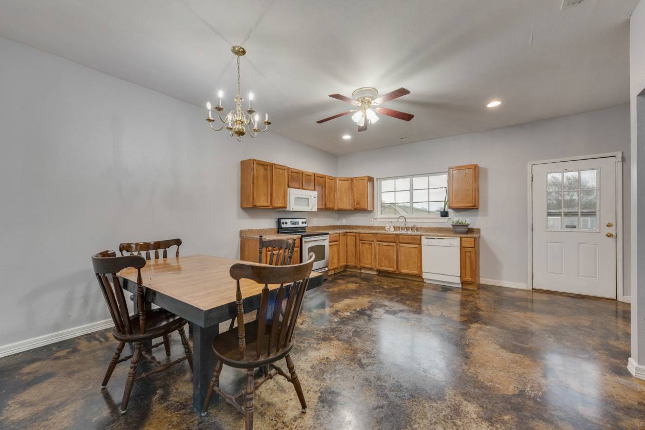 • MAIN HOUSE is precious, staged with real furniture. Very well kept home always clean. 3 Dinning areas, one outside under back porch. Kitchen with granite & farmsink and seating area, nice kitchen nook. Large utility room w.sink & room for 3 more frigs or freezers + cabs. Electric appliances. GIANT PRIMARY BR with tons of windows. Updated Primary bath with his & her closets & vanities. Separate tub and shower. 2 BRs share a jacknjill bath. 4 BR is large. 3rd bathroom. Familyroom has decorative fireplace. 2nd residence (1220 sq ft) is next door w.large open concept both familyroom & BR space w.stained concrete. Full Kitchen with dinning + & bathroom. 3rd residence (1161 sq ft) upstair s. Recently Updated. Double vanity in bathroom connects to large primary. Opens up to large carpeted living area. Dinning and kitchen with beautiful views.