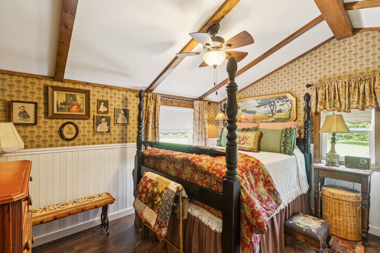 Welcome to Honey Creek Farm, a hidden gem with two homes nestled on 10+ unrestricted acres near historic downtown McKinney, the new HEB and Signature Kroger. This ag exempt, immaculate estate is home to award-winning honeybees who won first place at the State Fair of TX in ‘22 and ‘24. (New owners will be provided options for keeping the exemption.) A magical retreat with towering pecan and oak trees, a year-round creek, wooden bridge, and stone seating area perfect for peaceful strolls and quiet reflection. Rich with history and truly unique in Collin County, it includes meandering trails that wind through the woods beside the creek, a perfect escape. The main house is meticulously maintained with two bedrooms, two living areas, a full bath, 2-car garage, RV hookup, quaint garden shed, large deck and patio, new roof, plus brand new flooring and fresh paint throughout, filled with natural light and charming character. The new red barn with AC has tons of storage, covered RV space, and a carefully curated English cottage above-a storybook retreat perfect as guest quarters, mother-in-law suite, or short-term rental. It’s beautifully landscaped with a fire pit creating a cozy spot for family and friends. The scenic build site is ready for your dream home or boutique venue, with a winding driveway, water, electric, new septic and extra parking for guests already in place. The property is partially fenced and suited for horses or other farm friends. A rare opportunity to own this pristine countryside in desirable McKinney-the possibilities are endless!